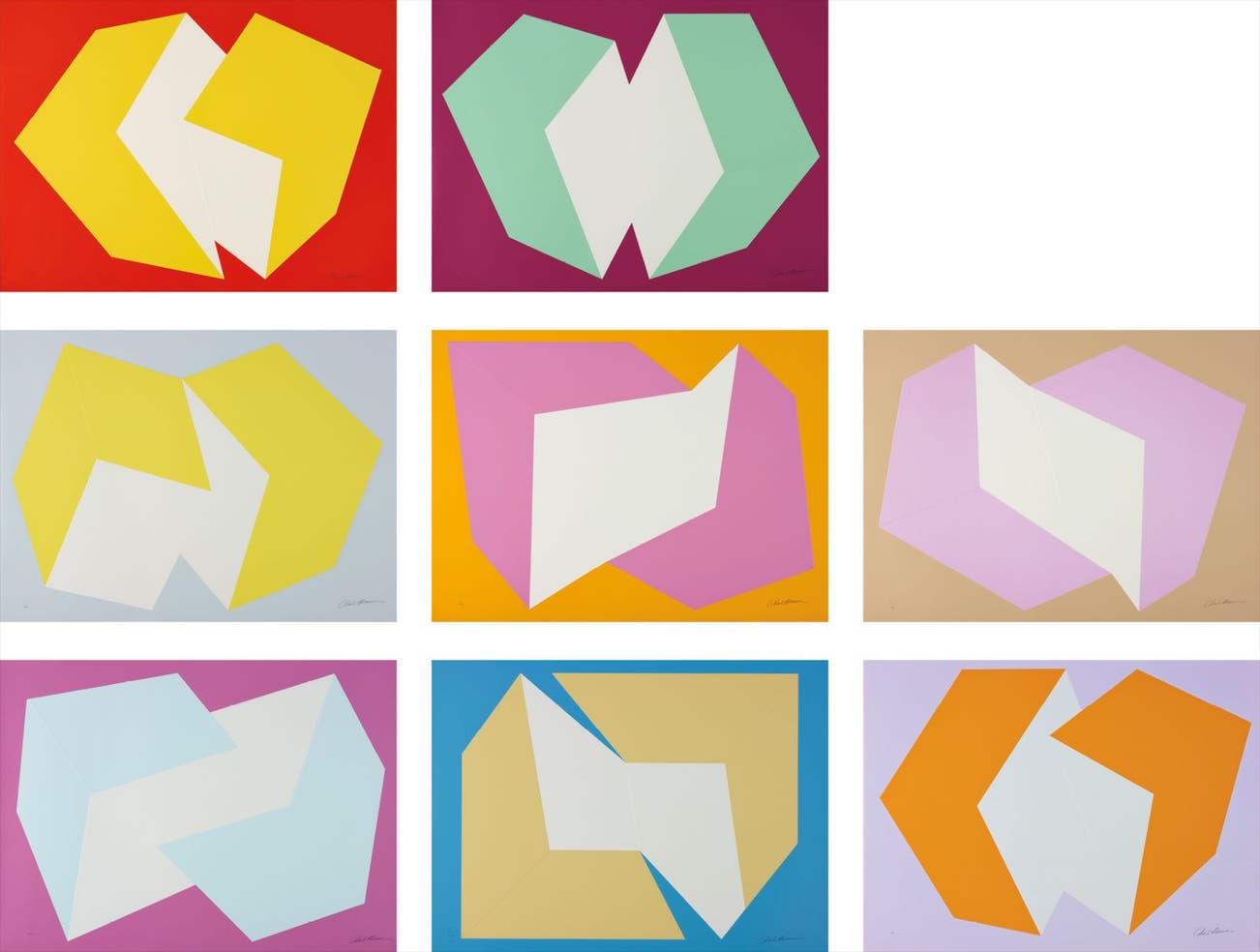 eight signed and numbered 36/200 in pencil and one signed and numbered 'XVIII/XX' in pencil, published by Éditions Denise René (with their blindstamp), contained in original purple linen-covered portfolio.