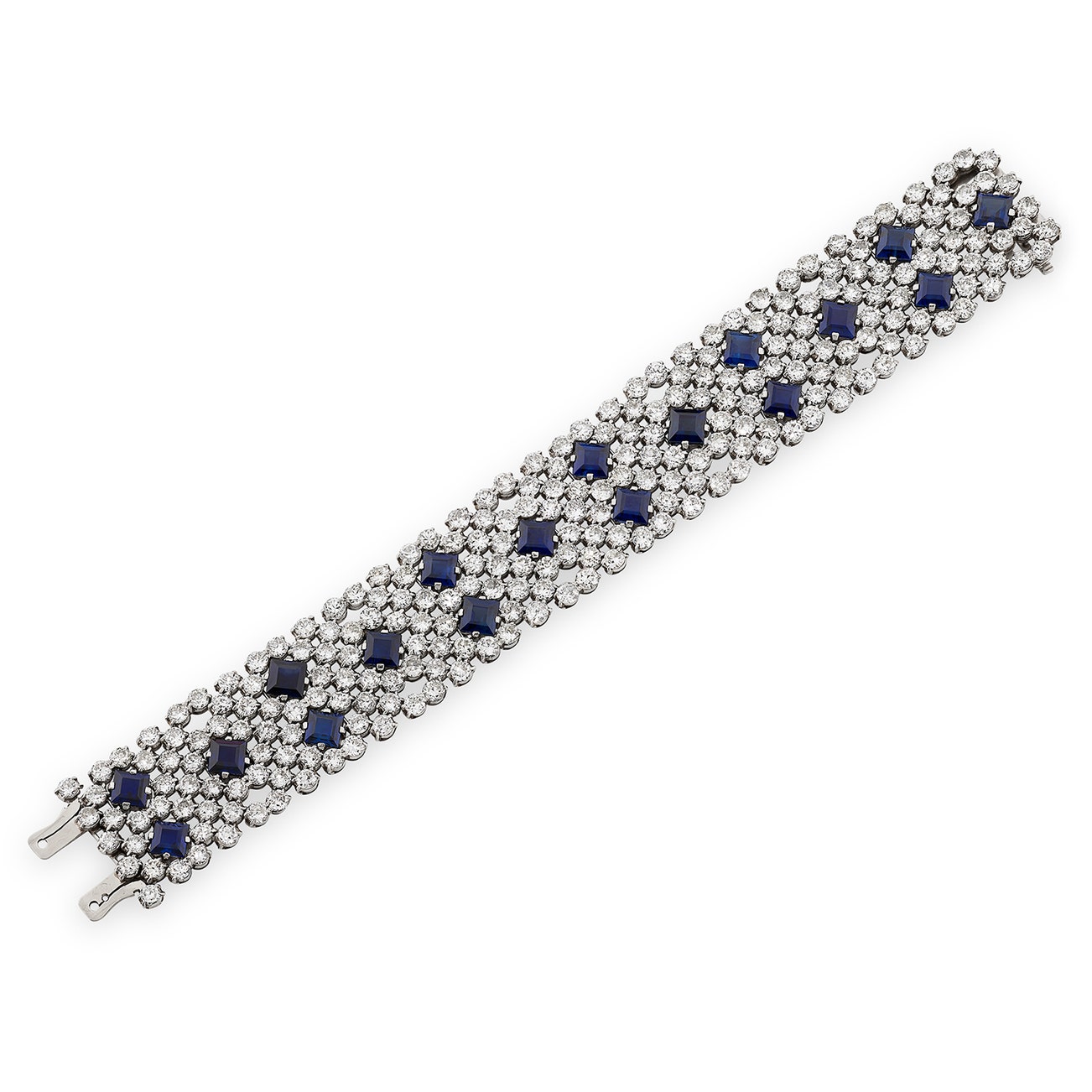 Set with square-cut sapphires, accented with circular-cut diamonds, length approximately 180mm, numbered, French maker’s mark for Charles Holl and assay marks for platinum and gold.