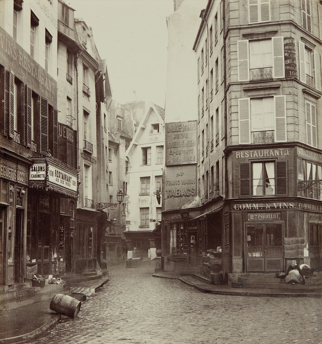 Charles Marville had already established a successful career as an illustrator before taking up photography in the 1850s. He showed an immediate and intuitive talent for the medium, producing photographs for the publications of Blanquart-Evrard while also creating several innovative photographic devices and printing techniques. Working initially with paper-negatives, Marville found his true medium in the wet-plate process. He exploited the visually precise qualities of glass negatives in his documentation of the city of Paris that began in 1858. Using a camera that could accommodate large plates, Marville worked throughout the 1850s, ‘60s, and ‘70s, creating a rich and unprecedented chronicle of old Paris.