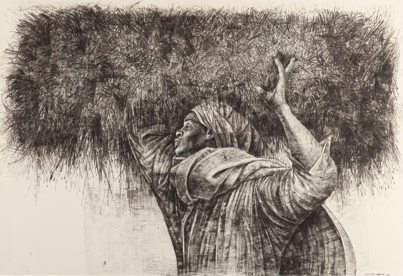 White was born in Chicago in 1918 and attended the Art Institute of Chicago despite being rejected from several other art schools on the basis of his race. In addition to his work as a painter, White was also a gifted teacher and a leader in his community. After moving to Los Angeles in the 1960s, he took up a position teaching at the Otis Art Institute, where David Hammons, and Kerry James Marshall were among his students. Considered one of the leading figures of post-war black figuration, his oeuvre was celebrated in a major travelling retrospective in 2018 at the Museum of Modern Art, New York; Los Angeles County Museum of Art; and The Art Institute of Chicago.