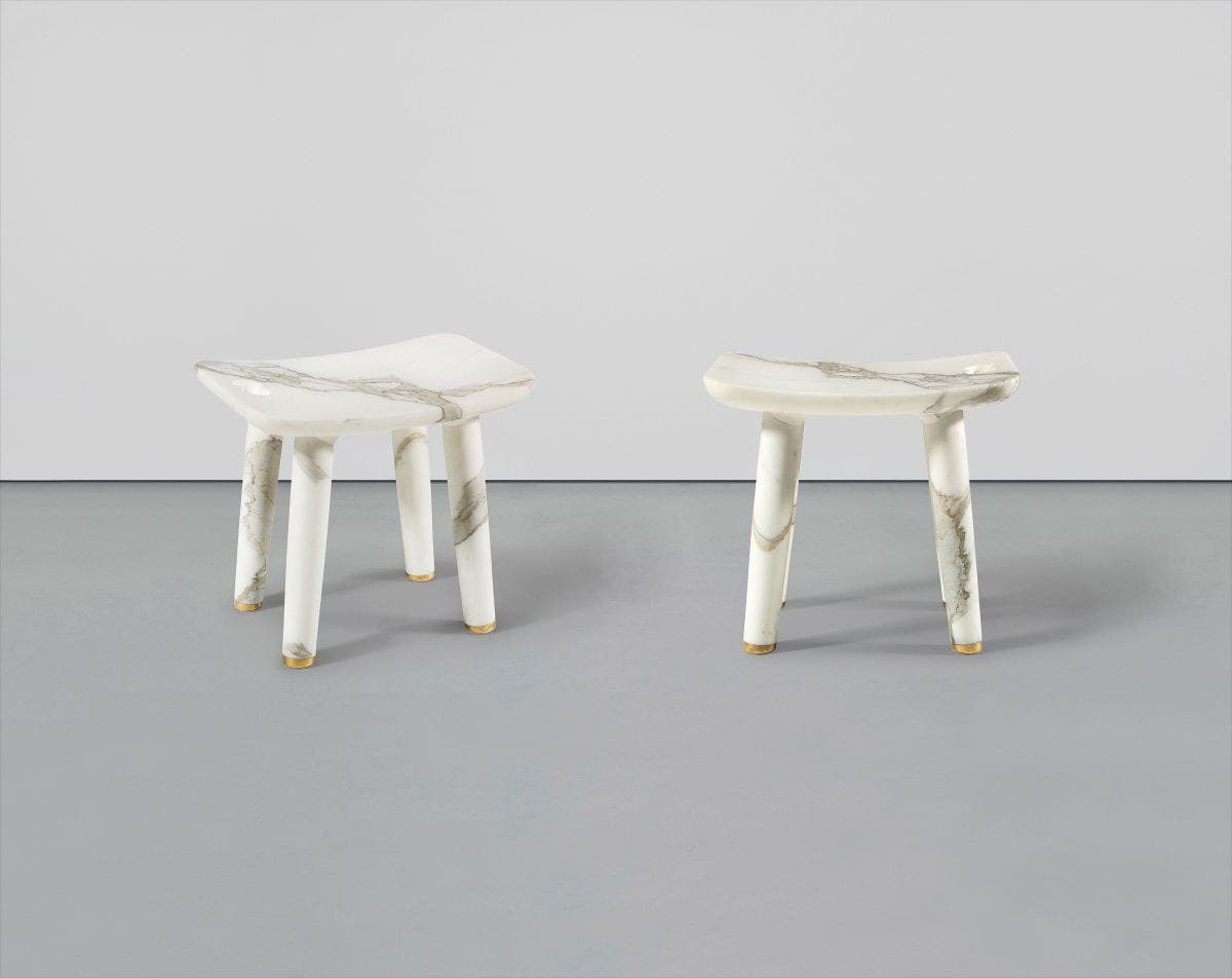 Carrara marble, brass.