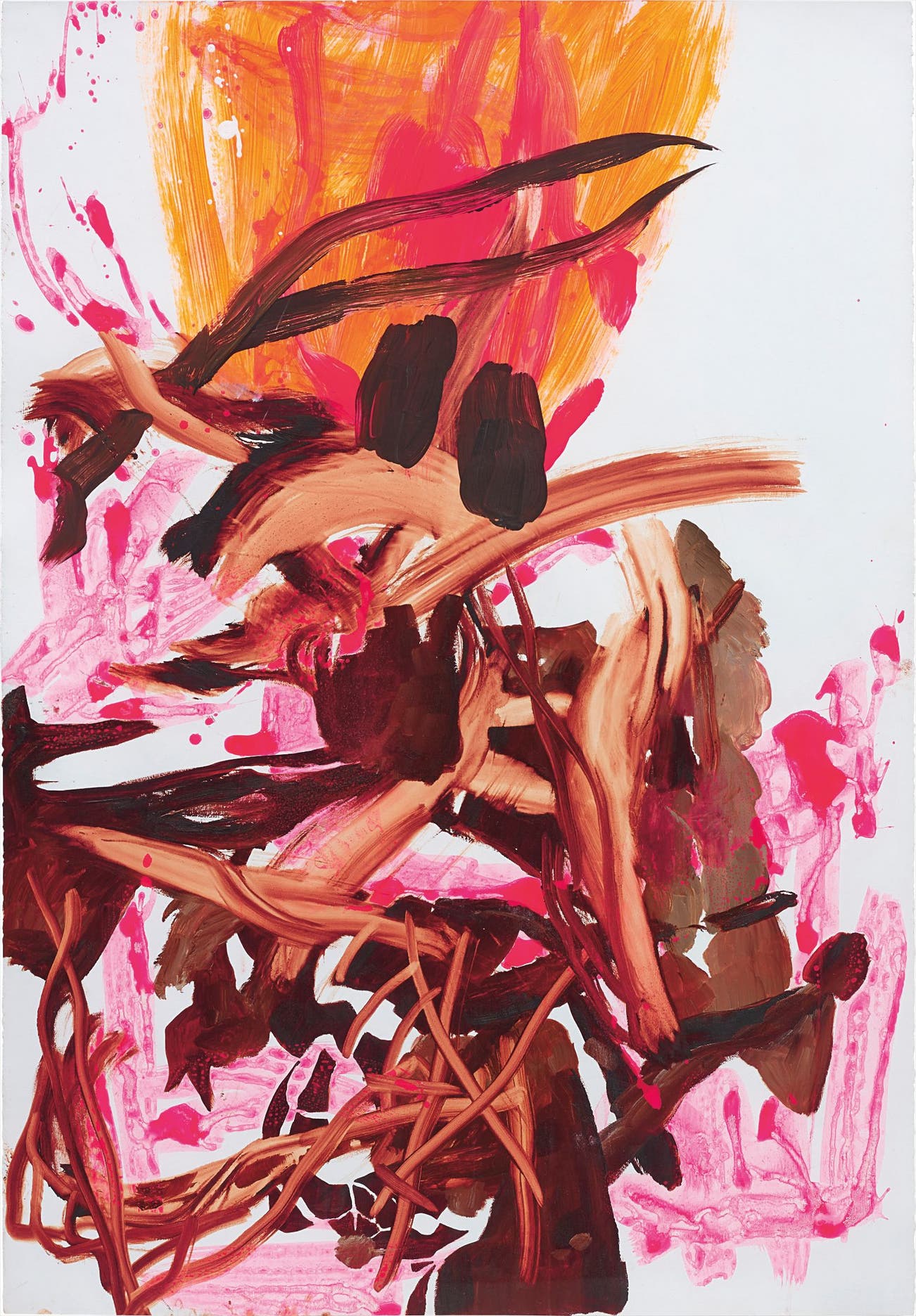 Signed and dated 'Charline von Heyl 2004' to a label affixed to the reverse of the backing board.