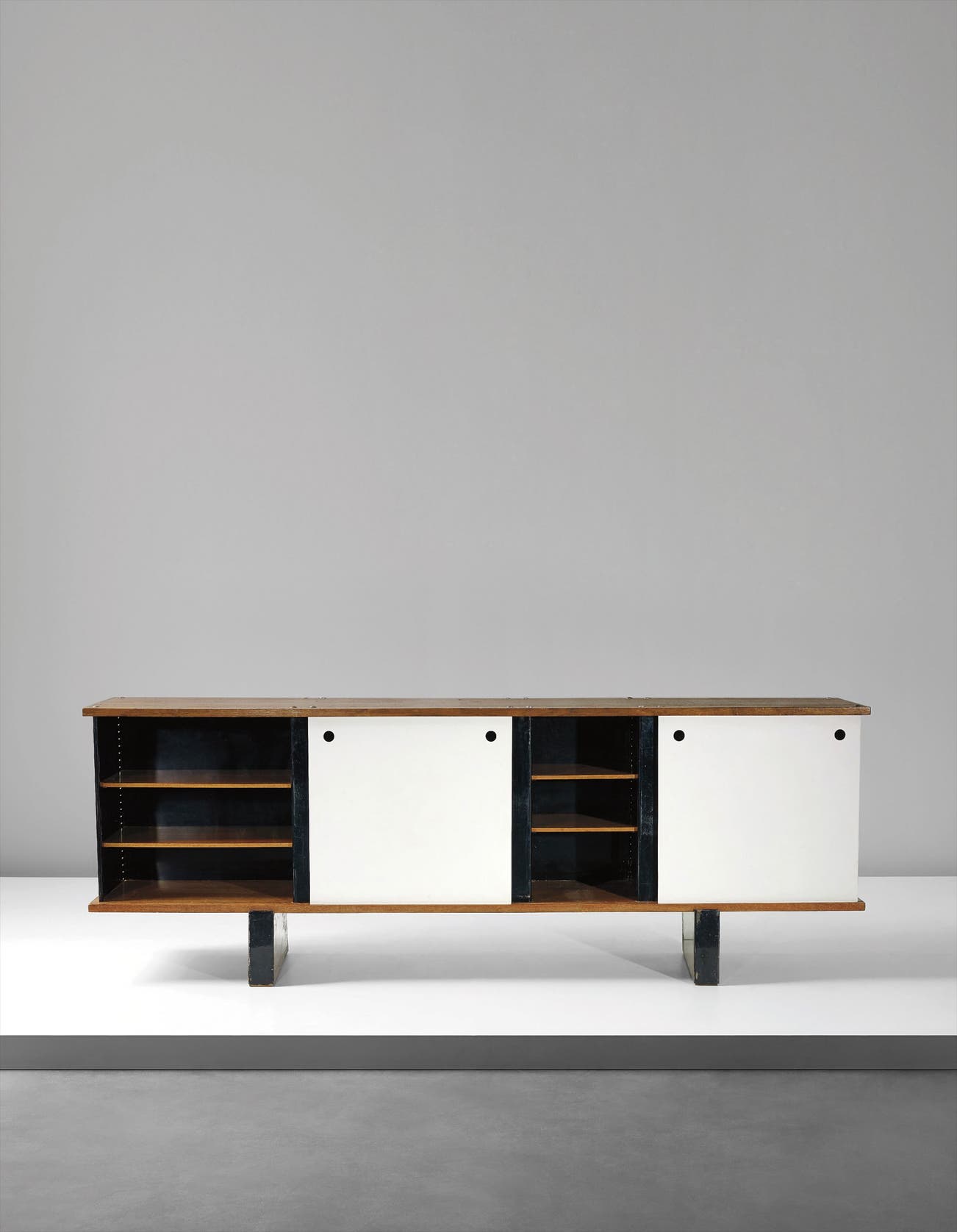 On the heels of this success, that same year she joined the Paris design studio of Le Corbusier and his cousin Pierre Jeanneret. For ten years the three collaborated on "equipment for living," such as the iconic tubular steel B306 Chaise Longue (1928). After World War II, Perriand joined forces with Jean Prouvé to create modernist furniture that combined the precise lines of Prouvé's bent steel with the soft, round edges and warmth of natural wood.