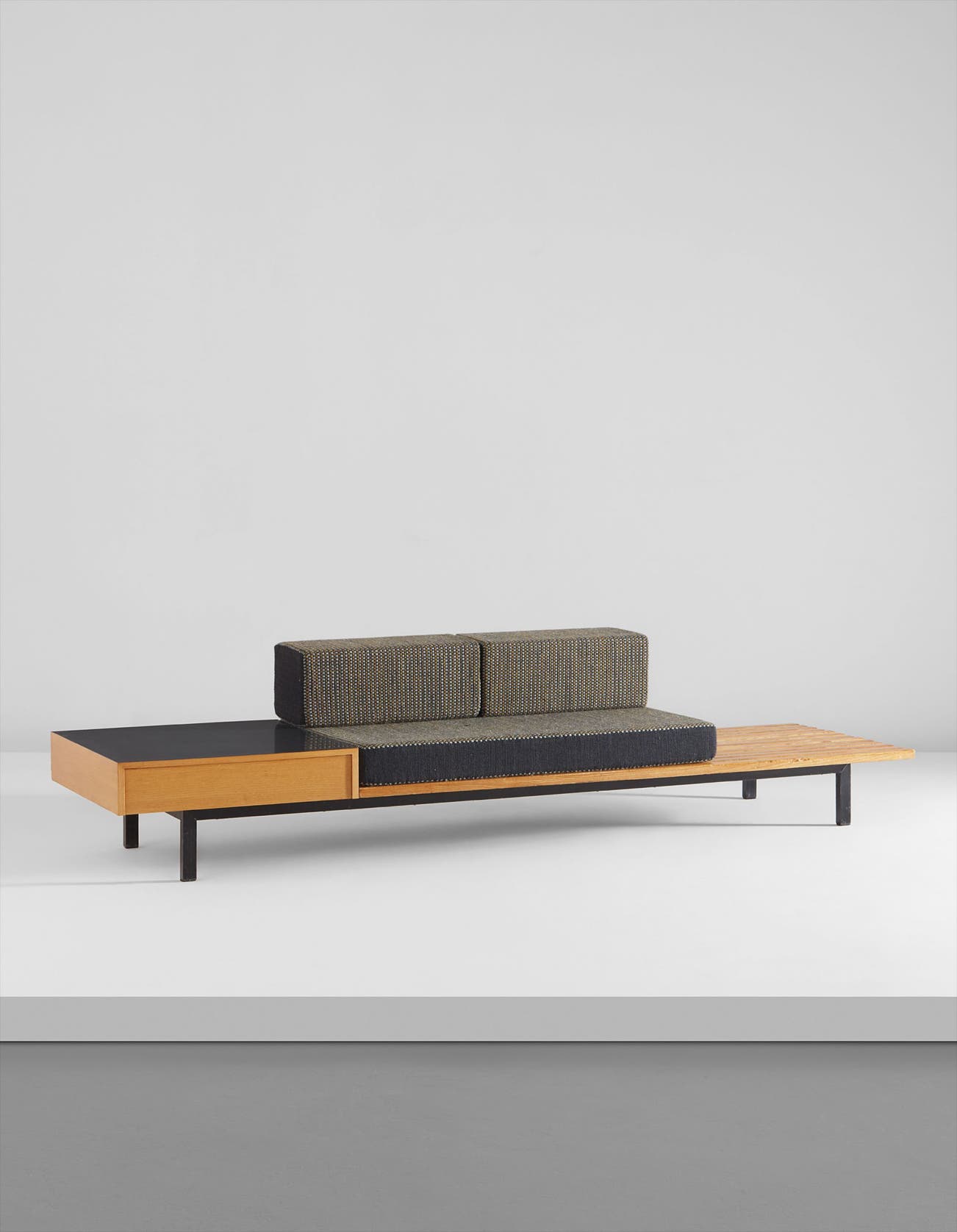 On the heels of this success, that same year she joined the Paris design studio of Le Corbusier and his cousin Pierre Jeanneret. For ten years the three collaborated on "equipment for living," such as the iconic tubular steel B306 Chaise Longue (1928). After World War II, Perriand joined forces with Jean Prouvé to create modernist furniture that combined the precise lines of Prouvé's bent steel with the soft, round edges and warmth of natural wood.