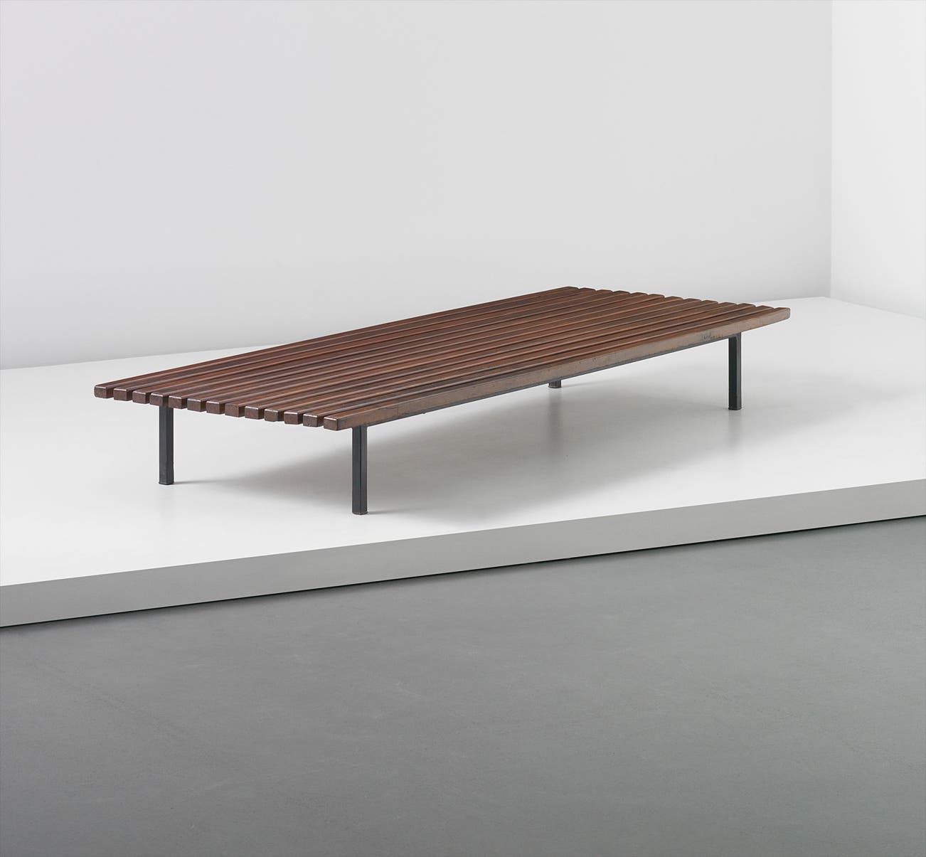 On the heels of this success, that same year she joined the Paris design studio of Le Corbusier and his cousin Pierre Jeanneret. For ten years the three collaborated on "equipment for living," such as the iconic tubular steel B306 Chaise Longue (1928). After World War II, Perriand joined forces with Jean Prouvé to create modernist furniture that combined the precise lines of Prouvé's bent steel with the soft, round edges and warmth of natural wood.