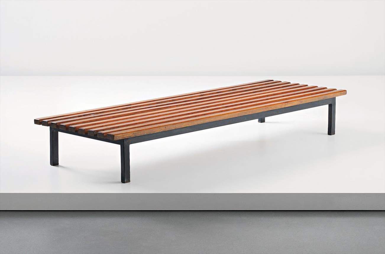 On the heels of this success, that same year she joined the Paris design studio of Le Corbusier and his cousin Pierre Jeanneret. For ten years the three collaborated on "equipment for living," such as the iconic tubular steel B306 Chaise Longue (1928). After World War II, Perriand joined forces with Jean Prouvé to create modernist furniture that combined the precise lines of Prouvé's bent steel with the soft, round edges and warmth of natural wood.