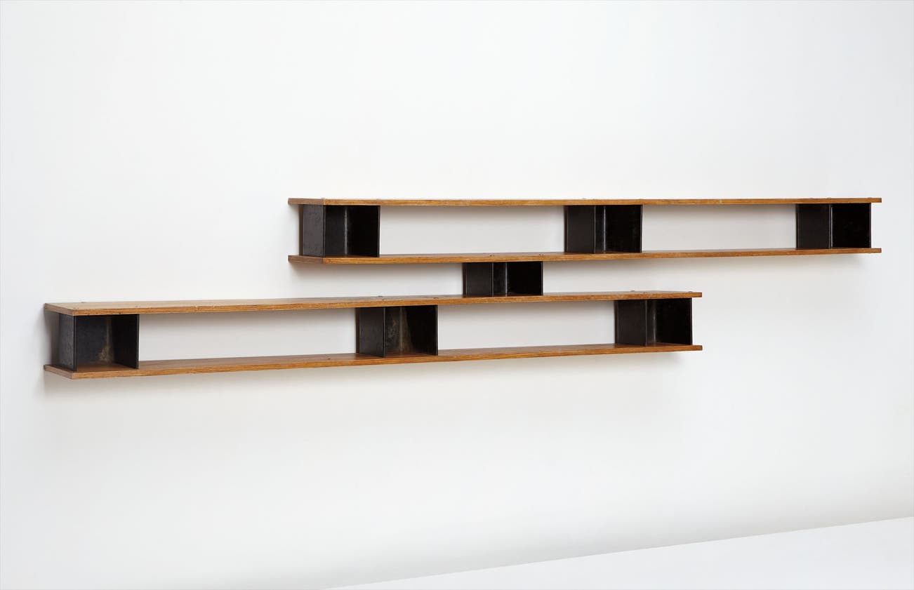 On the heels of this success, that same year she joined the Paris design studio of Le Corbusier and his cousin Pierre Jeanneret. For ten years the three collaborated on "equipment for living," such as the iconic tubular steel B306 Chaise Longue (1928). After World War II, Perriand joined forces with Jean Prouvé to create modernist furniture that combined the precise lines of Prouvé's bent steel with the soft, round edges and warmth of natural wood.