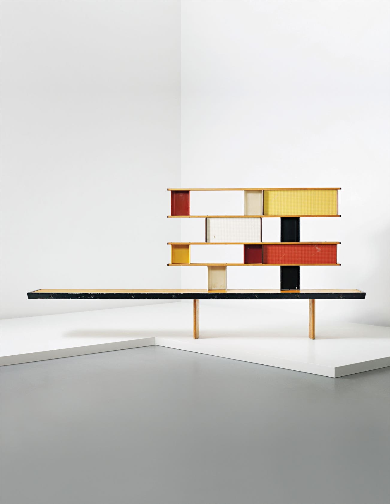 On the heels of this success, that same year she joined the Paris design studio of Le Corbusier and his cousin Pierre Jeanneret. For ten years the three collaborated on "equipment for living," such as the iconic tubular steel B306 Chaise Longue (1928). After World War II, Perriand joined forces with Jean Prouvé to create modernist furniture that combined the precise lines of Prouvé's bent steel with the soft, round edges and warmth of natural wood.