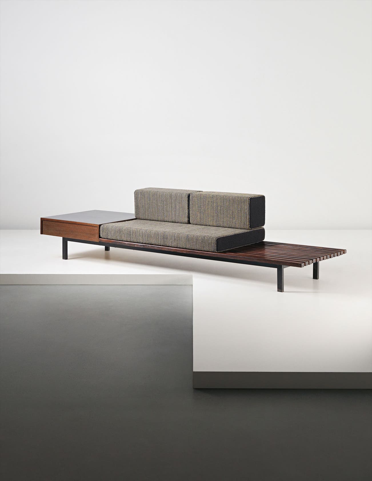 On the heels of this success, that same year she joined the Paris design studio of Le Corbusier and his cousin Pierre Jeanneret. For ten years the three collaborated on "equipment for living," such as the iconic tubular steel B306 Chaise Longue (1928). After World War II, Perriand joined forces with Jean Prouvé to create modernist furniture that combined the precise lines of Prouvé's bent steel with the soft, round edges and warmth of natural wood.