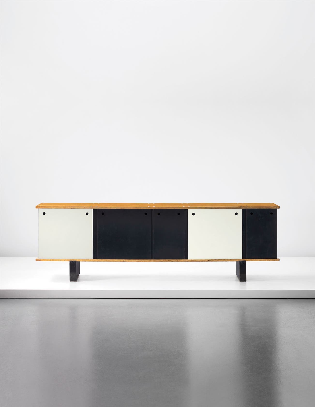 On the heels of this success, that same year she joined the Paris design studio of Le Corbusier and his cousin Pierre Jeanneret. For ten years the three collaborated on "equipment for living," such as the iconic tubular steel B306 Chaise Longue (1928). After World War II, Perriand joined forces with Jean Prouvé to create modernist furniture that combined the precise lines of Prouvé's bent steel with the soft, round edges and warmth of natural wood.