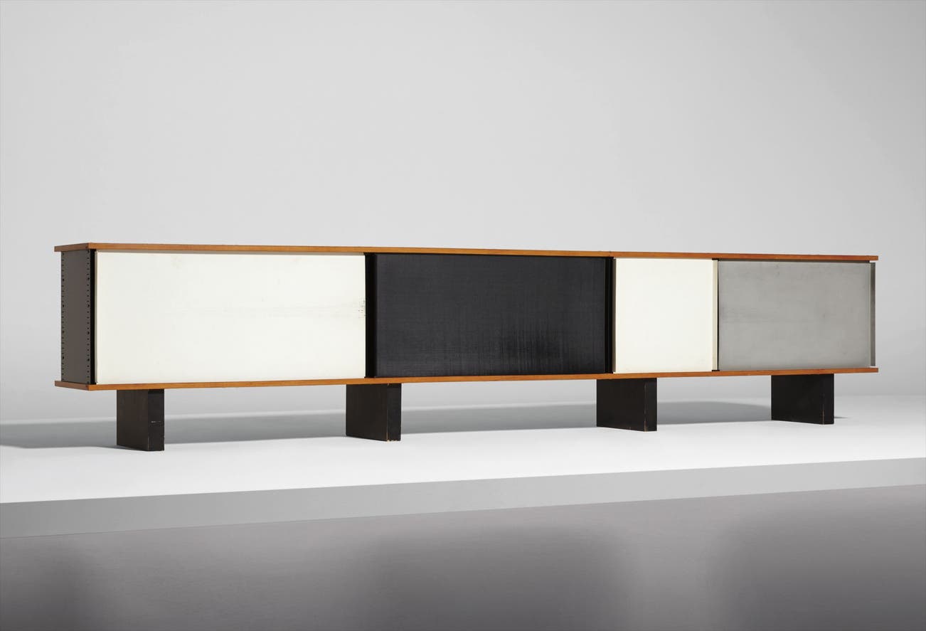 On the heels of this success, that same year she joined the Paris design studio of Le Corbusier and his cousin Pierre Jeanneret. For ten years the three collaborated on "equipment for living," such as the iconic tubular steel B306 Chaise Longue (1928). After World War II, Perriand joined forces with Jean Prouvé to create modernist furniture that combined the precise lines of Prouvé's bent steel with the soft, round edges and warmth of natural wood.