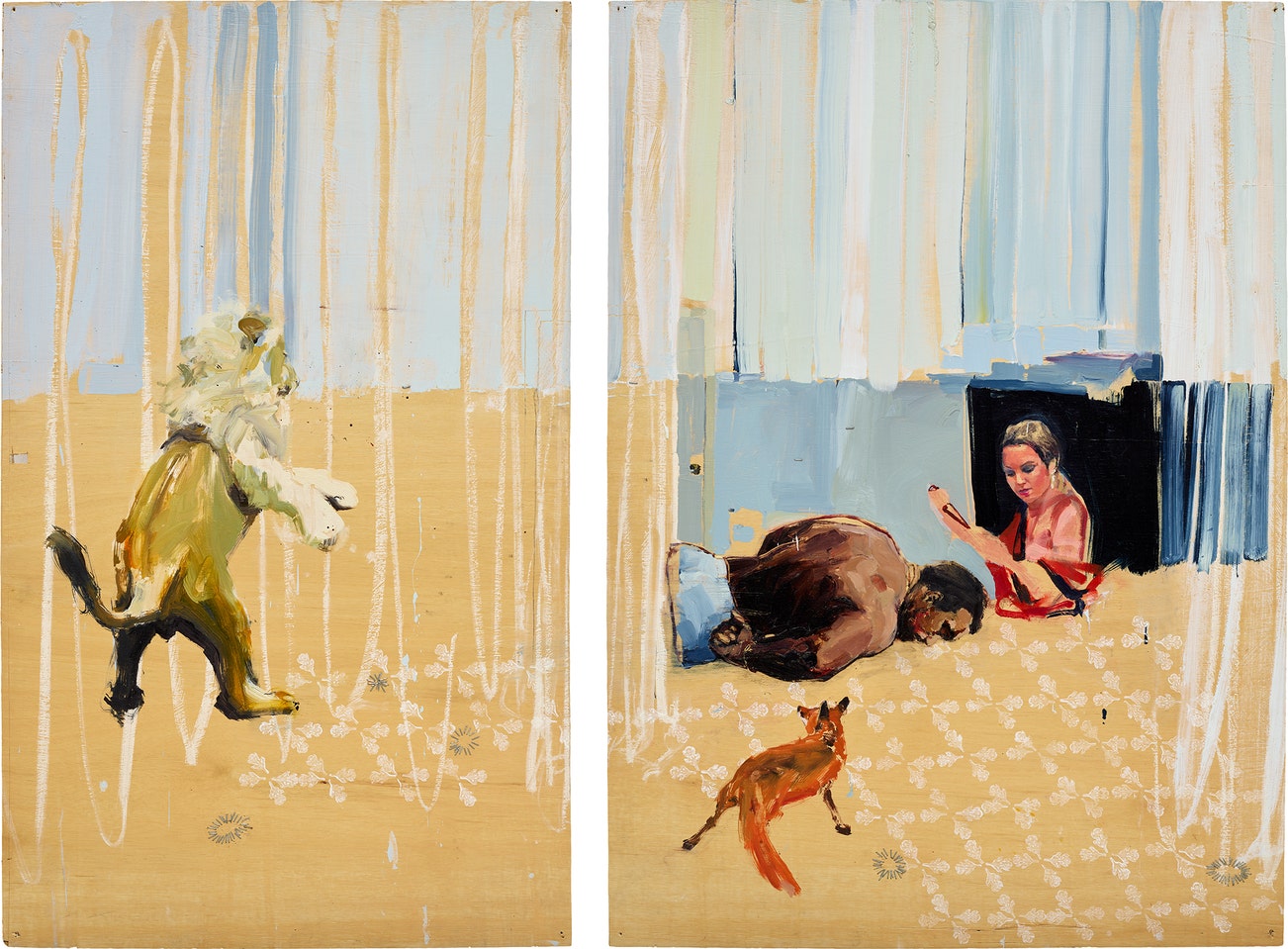 Although Baker has produced sculptural pieces in a wide and varied choice of materials as well as many large-scale and detailed drawings, he remains primarily a painter with an interest in narrative and an understanding of the tradition of painting. Known to purposefully damage his work by drilling, cutting and even shooting it, Baker intentionally puts in to question the preciousness of art and the definition of its beauty, adding to the emotive charge of the work he produces. Indeed Edward Lucie-Smith has described Baker’s paintings as having, “something more, a kind of romantic melancholy that is very British. And sometimes the melancholy turns out to have sharp claws. The pictures make you sit up and examine your conscience.”