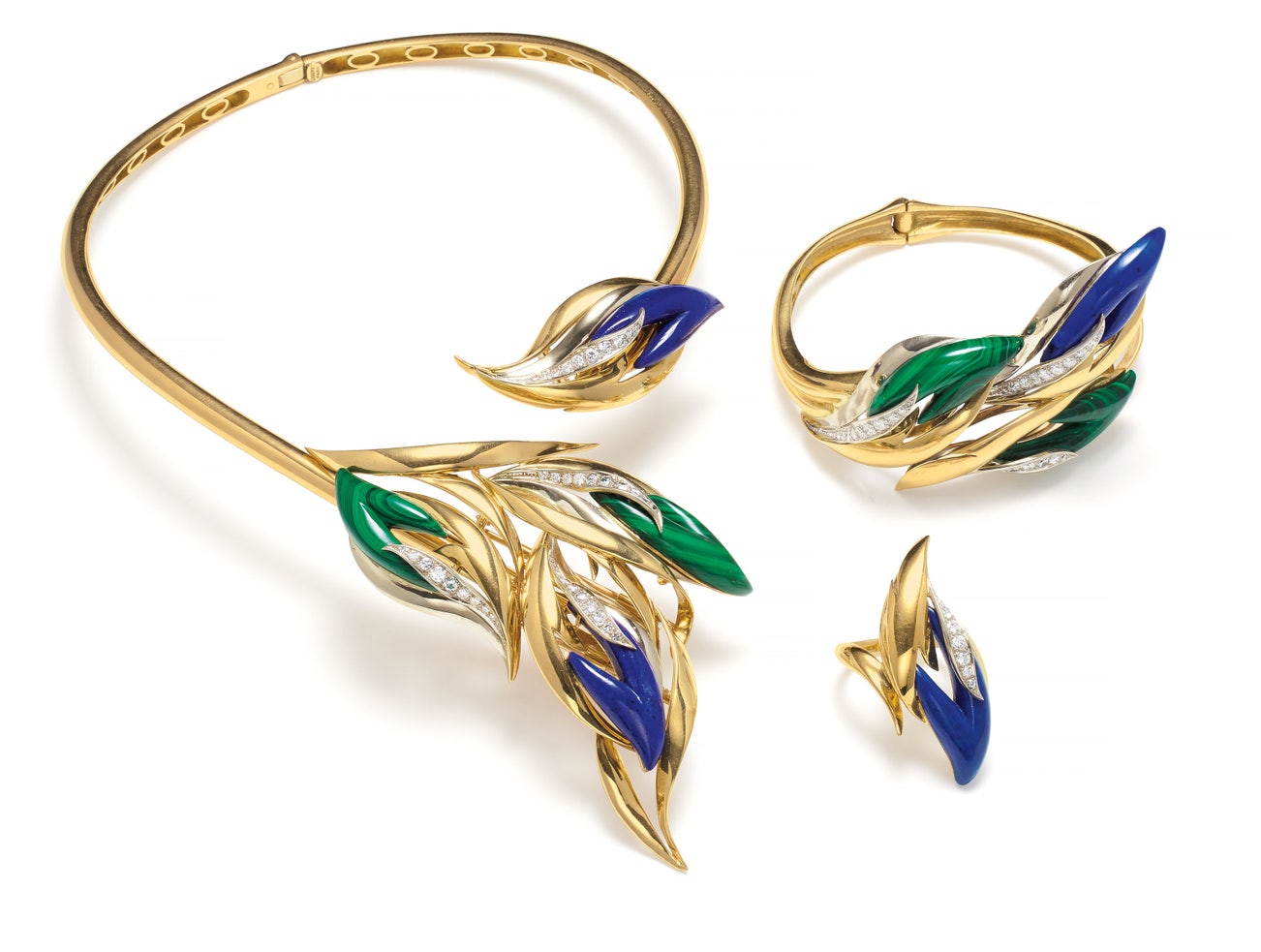 A Diamond, Lapis Lazuli, Malachite and Bicolored Gold Demi-Parure