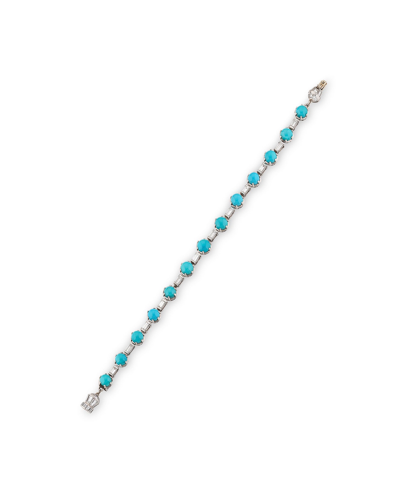 Set with cabochon turquoises, accented with brilliant-cut and baguette diamonds, length approximately 190mm, signed Chaumet, French assay mark for gold.
