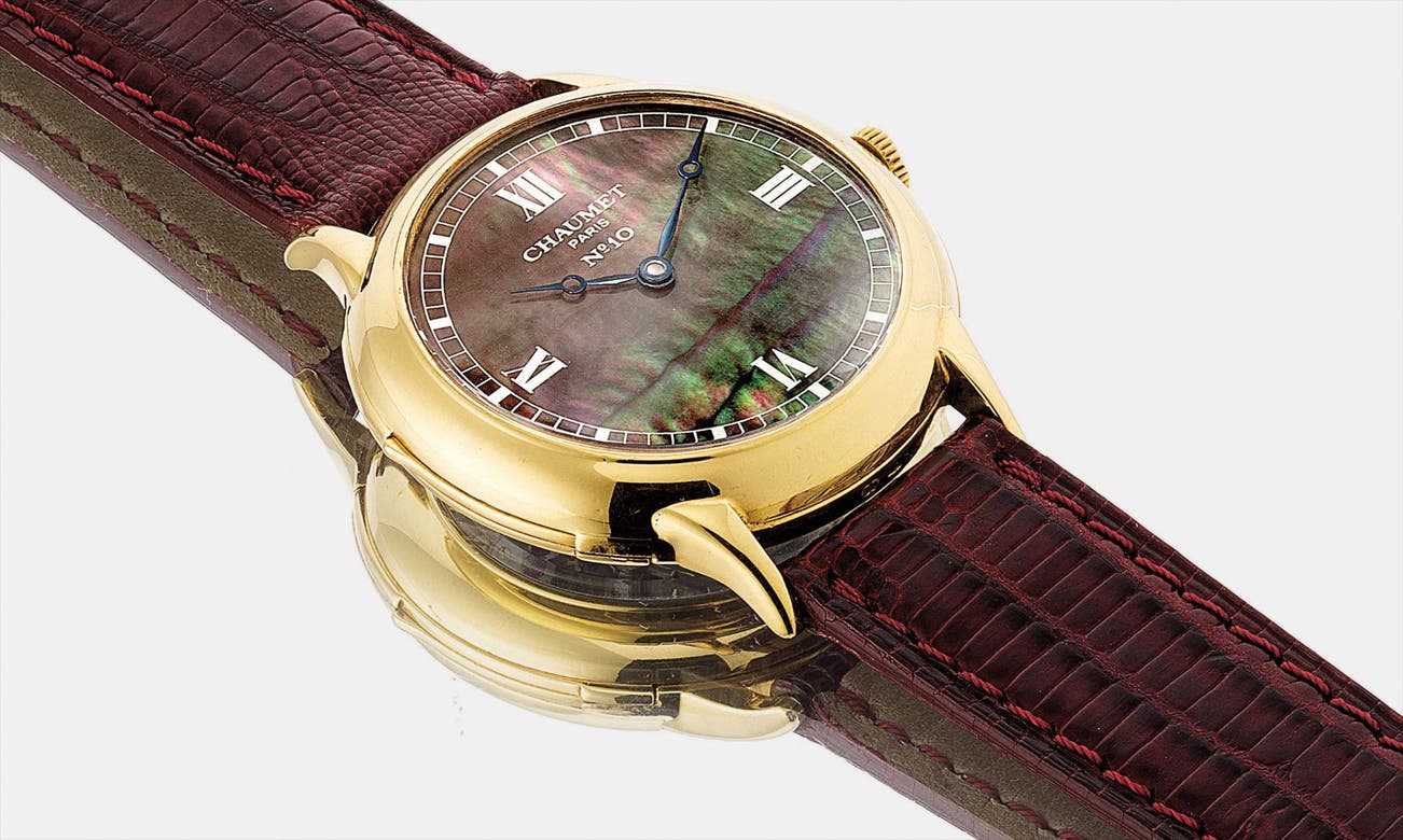 While Chaumet is most famous for their jewelry and gem-set masterpieces, the Maison also produces excellent and high quality time pieces. The present watch, fitted with a mother-of-pearl dial and roman numerals, is accompanied with a minute repeating mechanism which chimes in a clear and beautiful tone. It is very rare for a jeweler to create such a complicated wristwatch - indeed, this sentiment is reflected on the watch dial which reads " No. 10", suggesting that the present watch was produced in a very limited number of examples only.