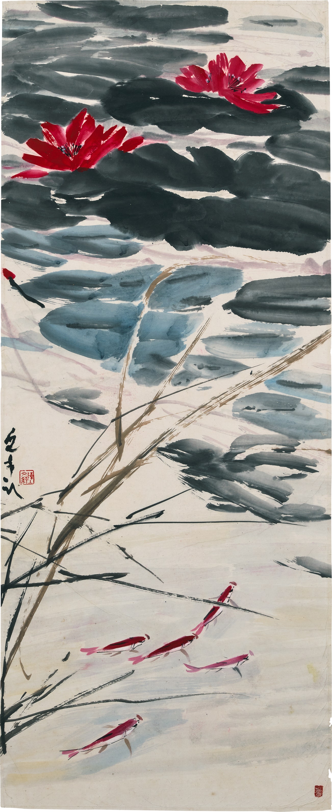 signed and stamped with the seal of the artist 'Chen Wen Hsi [in Chinese]' along the left edge; further stamped with another seal of the artist lower right