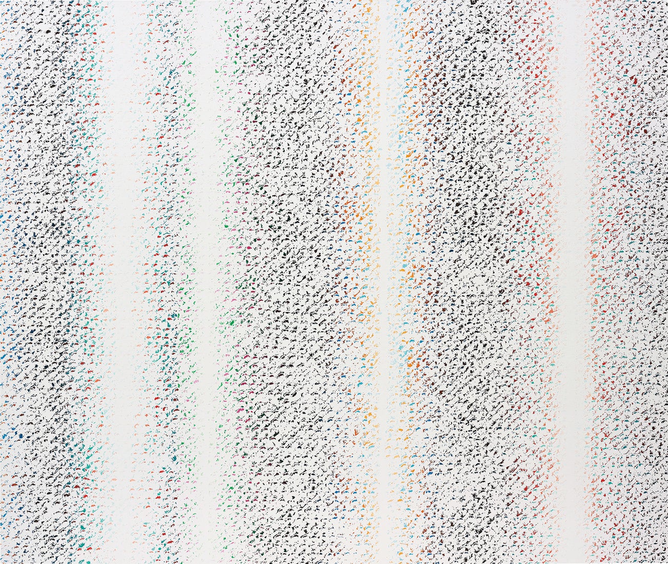 Cheyney Thompson’s practice is focused on his investigation into the construction and perception of painting. Seeking to deconstruct and unravel the formal qualities of painting itself, the present work, Chronochrome set 1, belongs to the larger Chronochromes series, within which Thompson engages with the notions of measurement, notation, production and circulation. By equating his painting with a sense of ‘wage labour’, Thompson highlights both the physiological and physical toil made manifest within each fleck of paint, and points, more broadly, to the socio-economic networks which determine the dynamics of the art market and art-production.