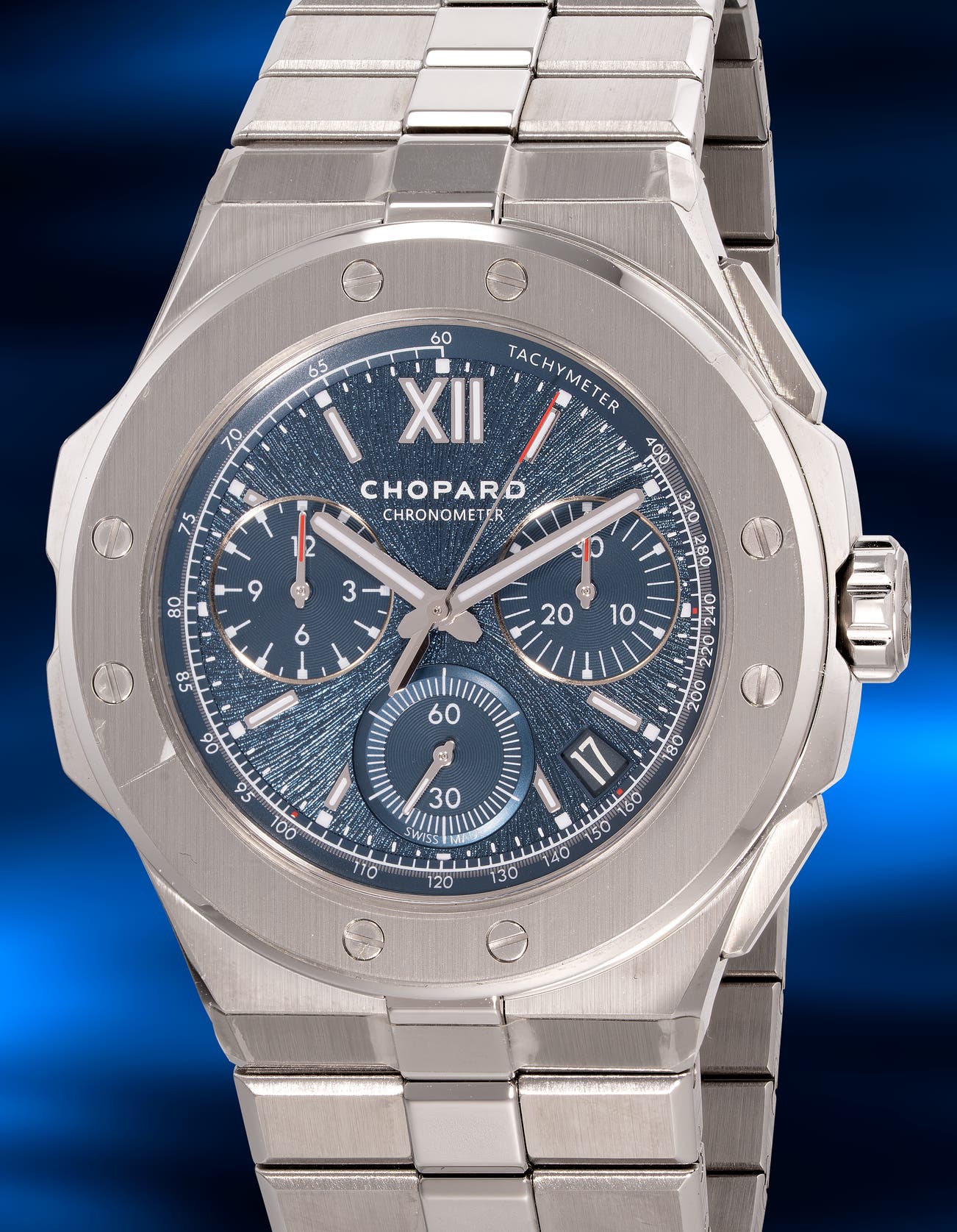 - With its bold blue dial, rugged construction and precision engineering, this brand new, unworn Alpine Eagle Chronograph is a true sports watch for the modern enthusiast—equally at home on mountain trails or in urban environments.