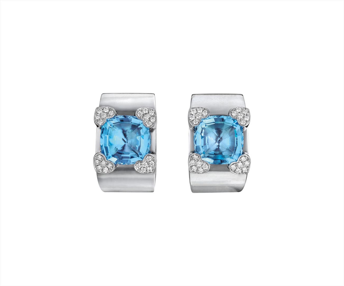 A Pair of Blue Topaz, Diamond, and Gold Earclips