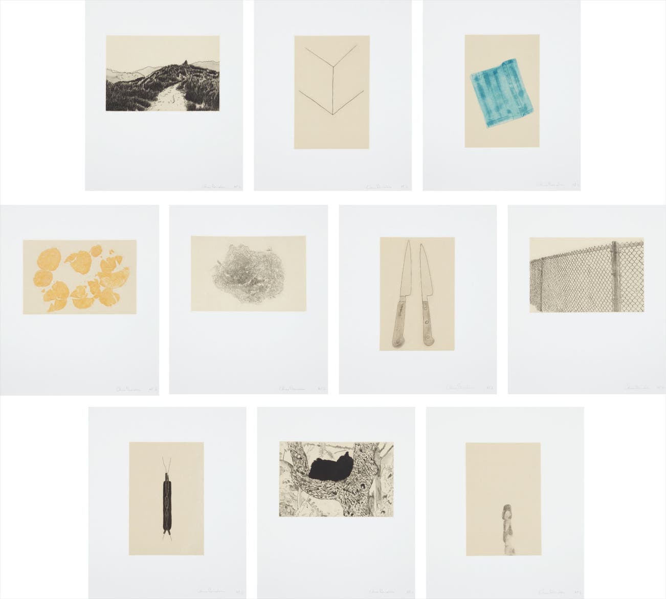 The complete set of ten etchings with aquatint in colors, on natural gampi to Magnami Pescia paper, with full margins, with printed text on Kozo-backed Gampi to Magami Pescia paper (25 pages),