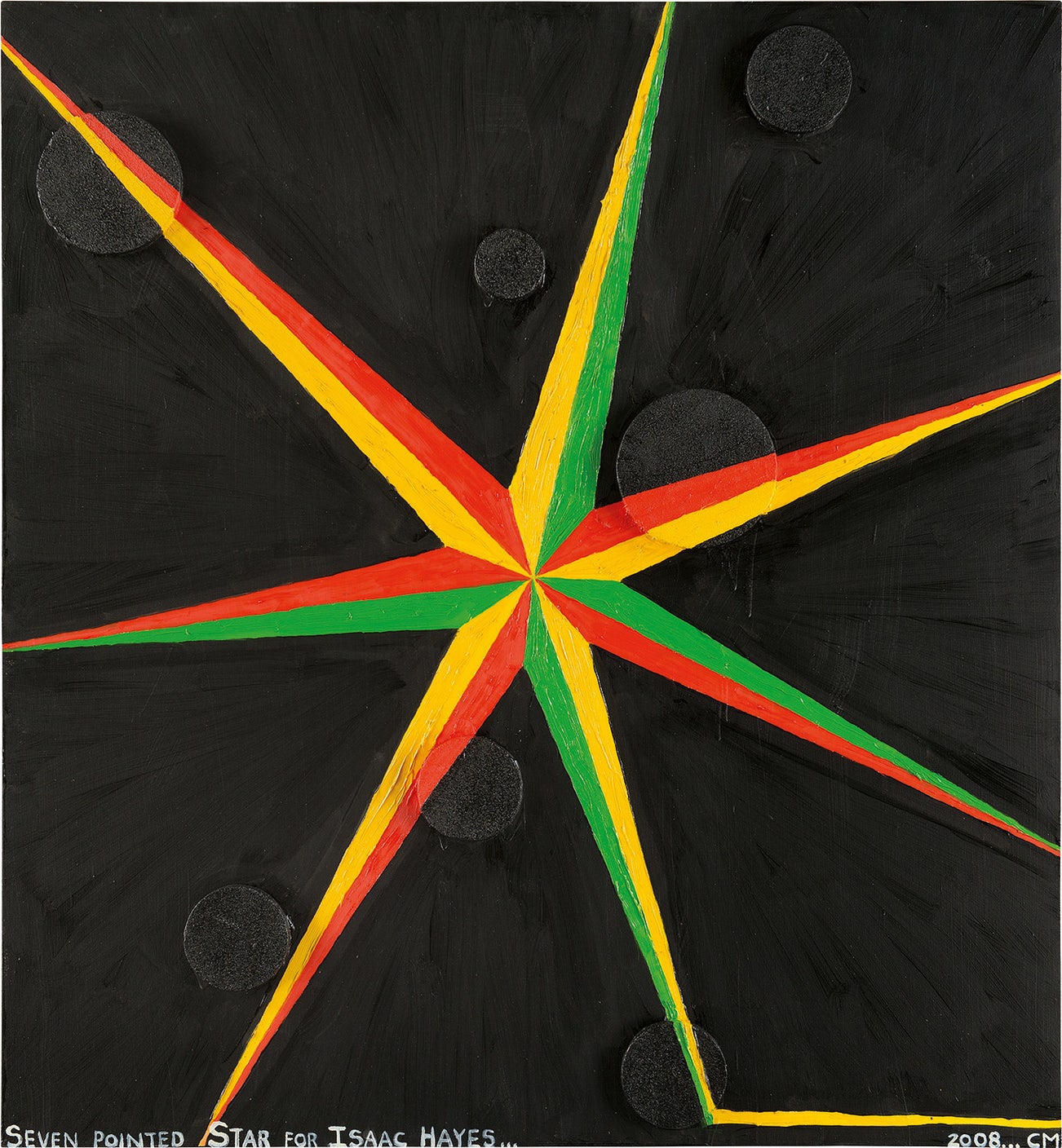titled "SEVEN POINTED STAR FOR ISAAC HAYES..." lower left; signed with the artist's initials and dated "2008... CM" lower right; further signed with the artist's initials, titled and dated "SEVEN POINTED STAR FOR ISAAC HAYES 2008... CM" on the reverse