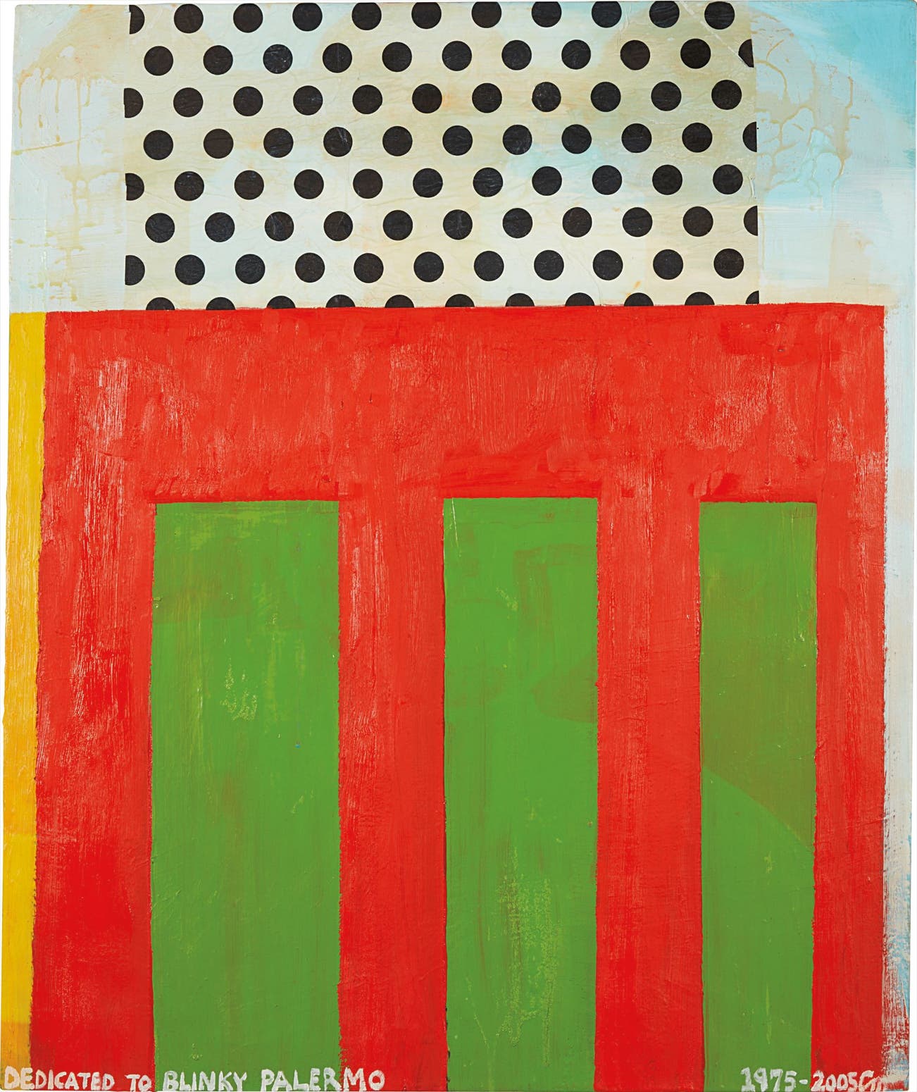 signed with the artist's initials, titled and dated "DEDICATED TO BLINKY PALERMO 1975-2005 CM" along the lower edge; further signed, initialed and dated "C MARTIN 1973-2005 CM" on the reverse