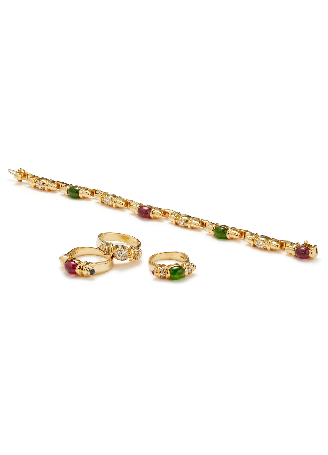 A Group of Tourmaline, Diamond, Sapphire and Gold Jewelry