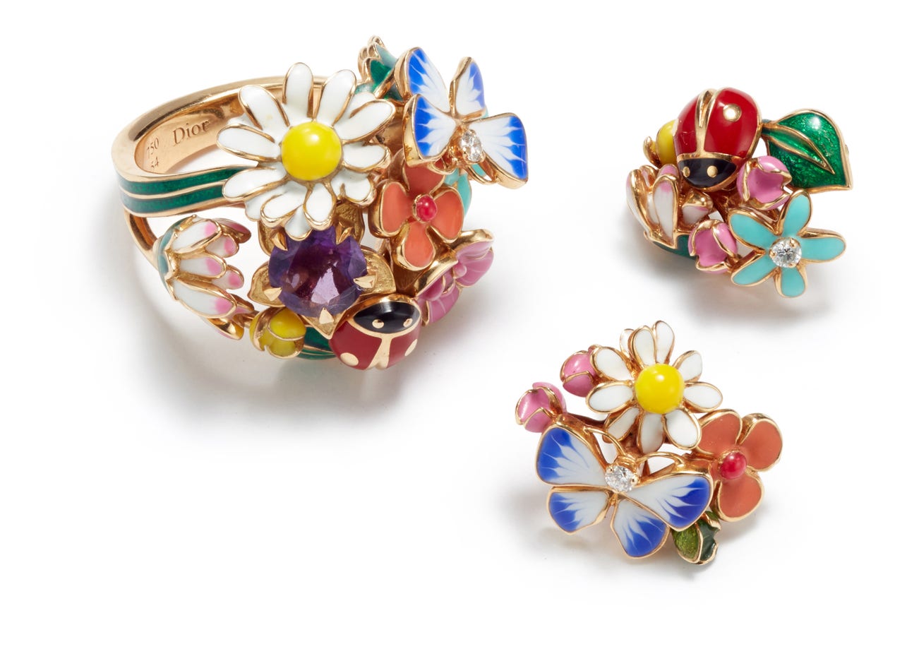 A Set of Enamel, Diamond and Amethyst 'Diorette' Earrings and Ring