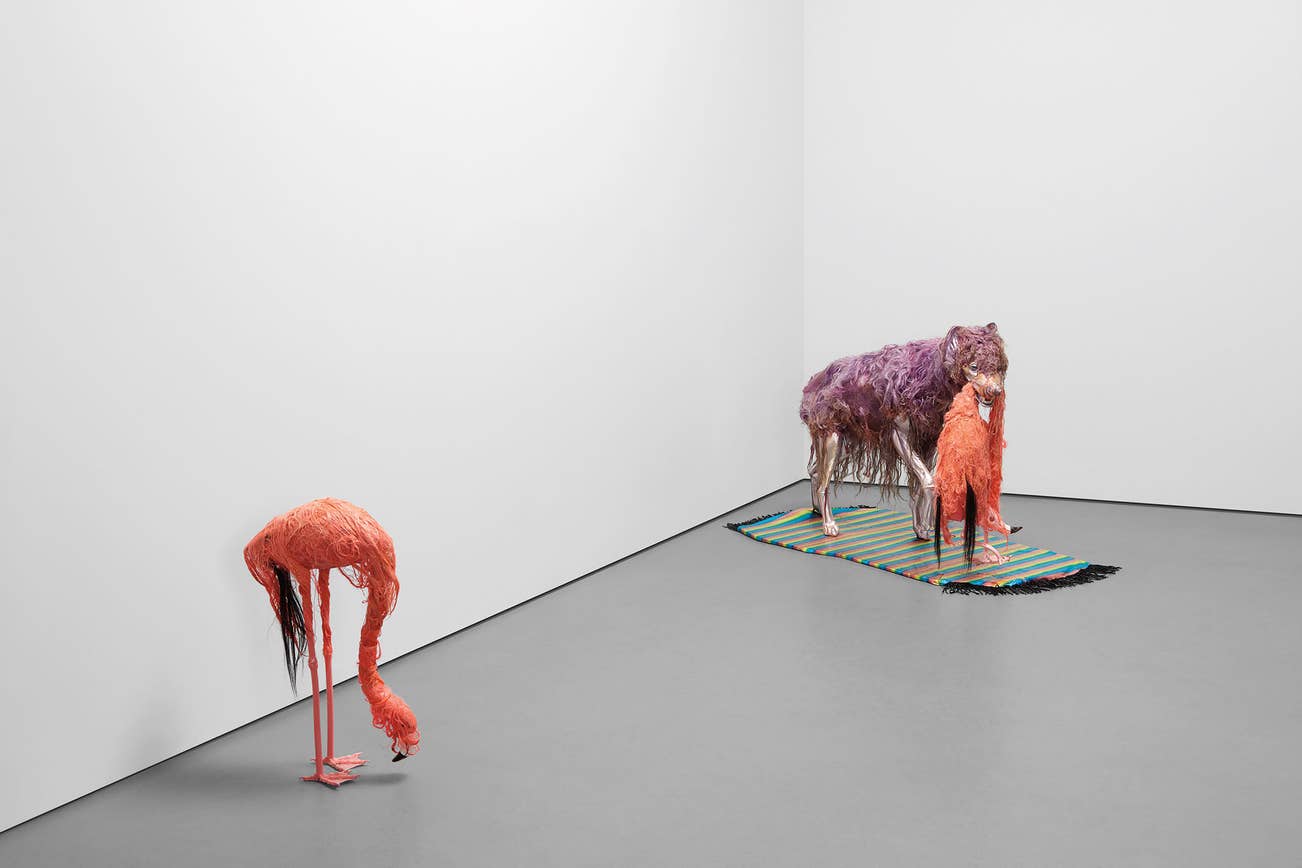 hyena, flamingo and rug: 37 x 67 x 34 in. (94 x 170.2 x 86.4 cm.)