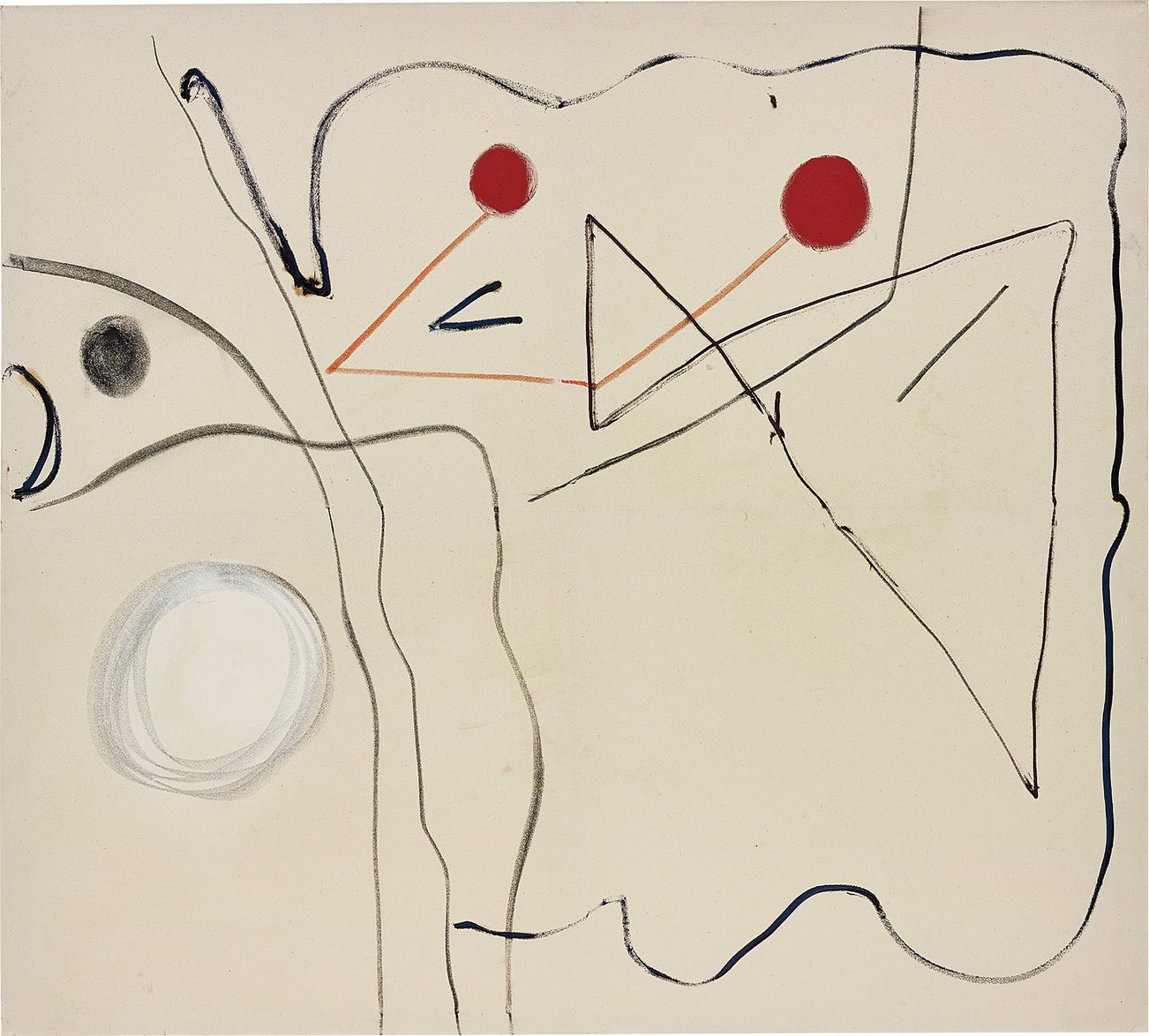 enamel paint, charcoal, oil stick, oil and tape on canvas