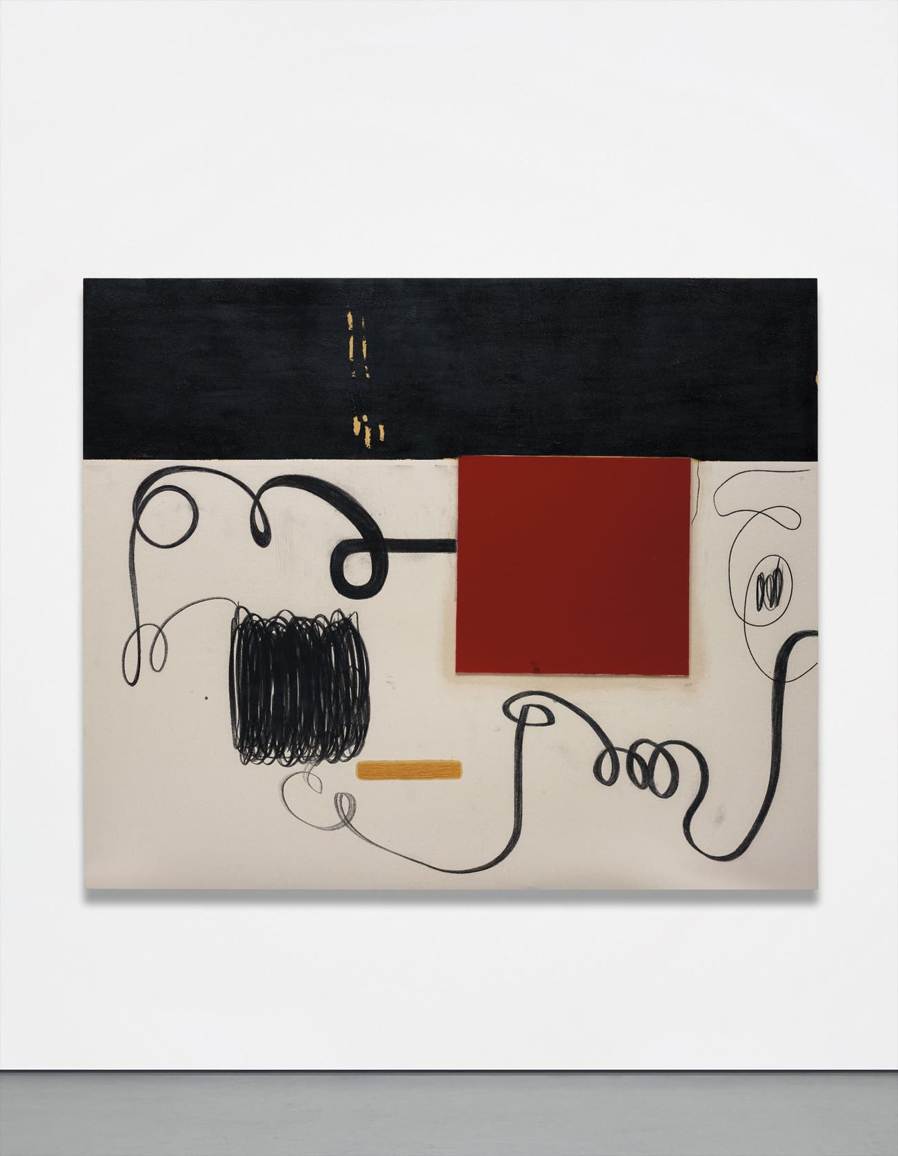 oil, charcoal, pencil, resin and rabbit skin glue on canvas