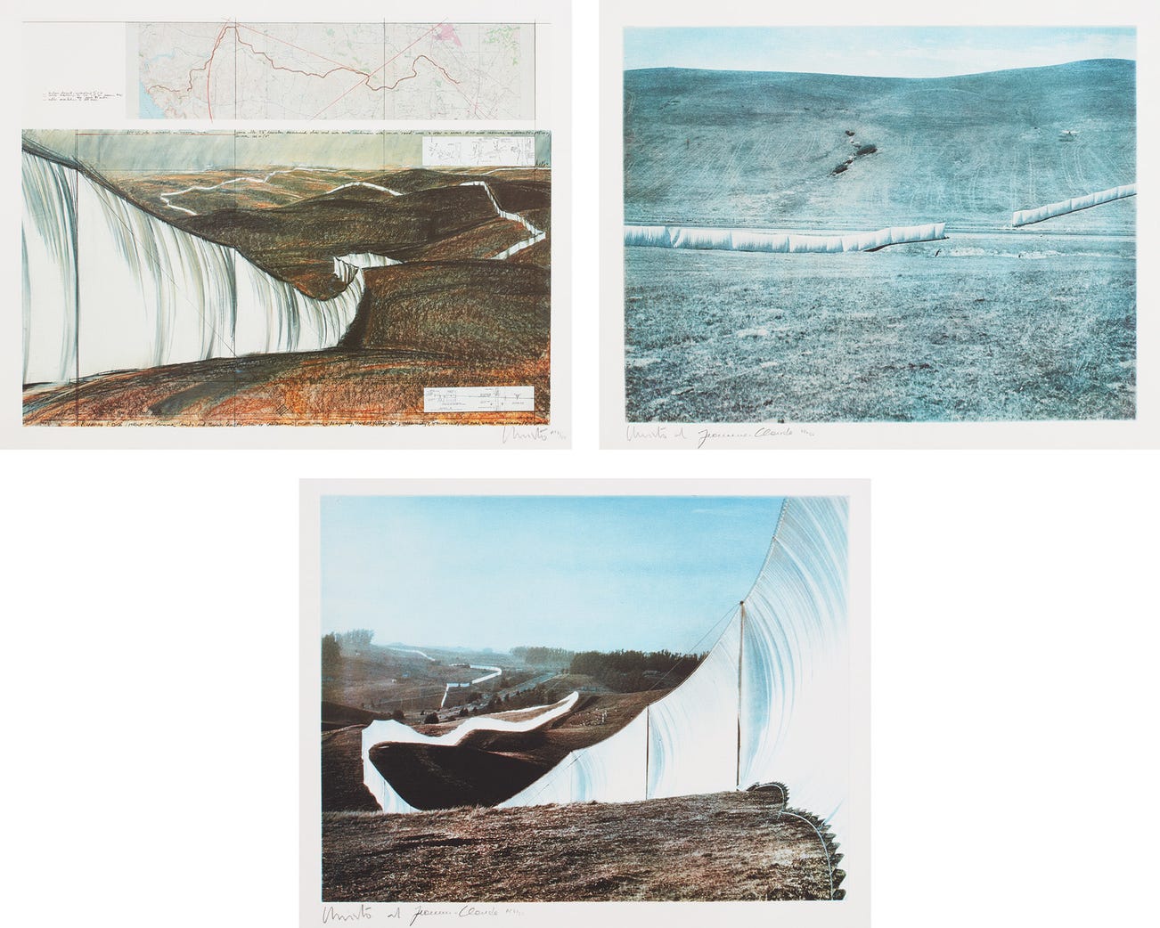 All signed by Christo, one signed by Jean-Claude and Christo and numbered 'AP 6/22' in pencil (an artist's proof, the edition was 60 and 10 in Roman numerals), published by Edition Schellmann, Munich and New York, all framed.