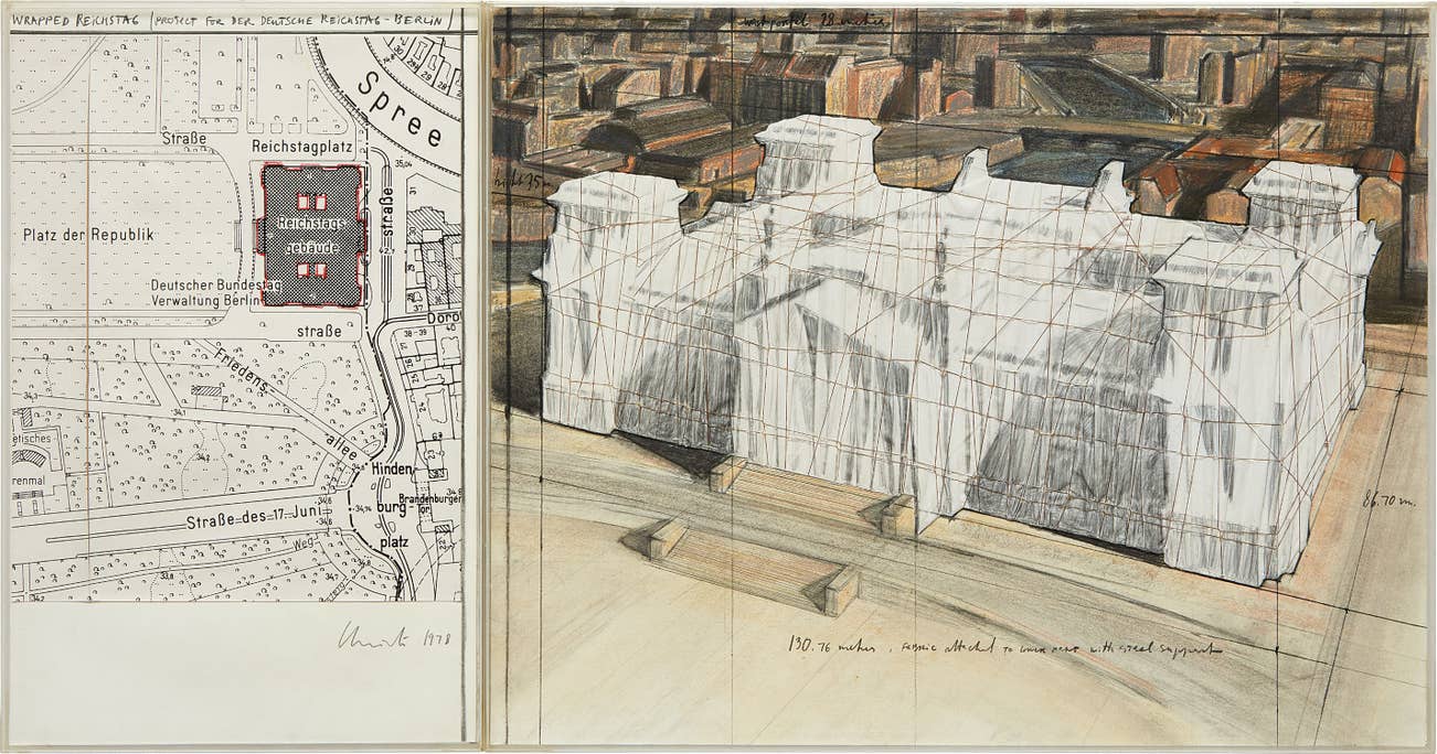 signed and dated "Christo 1978" lower left; further titled "WRAPPED REiCHSTAG" upper left