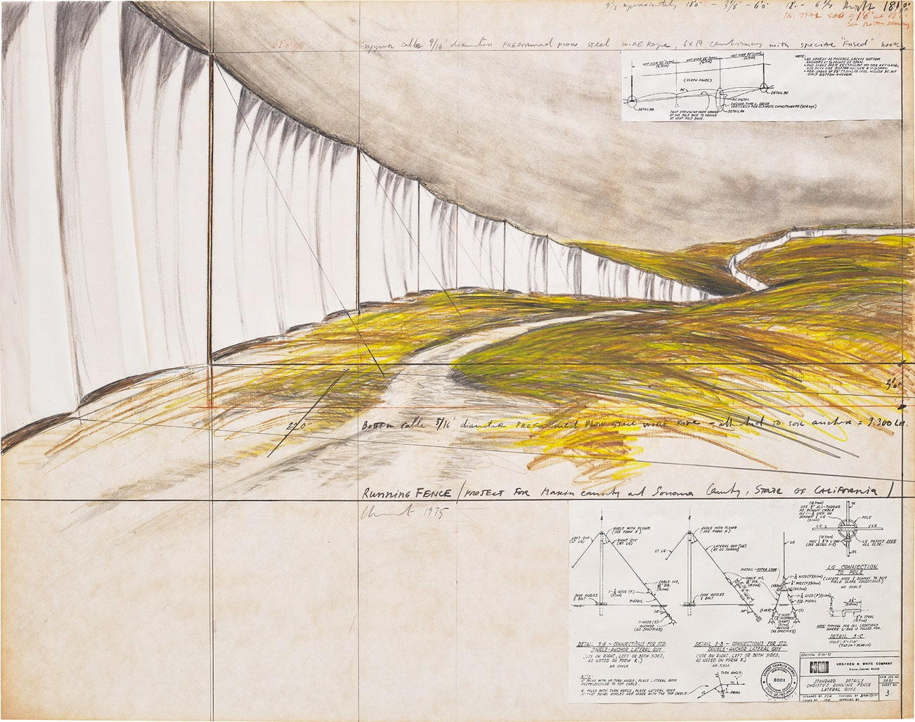 signed, titled, inscribed and dated 'Christo 1975 RUNNING FENCE (PROJECT FOR Marin County and Sonoma County, STATE OF CALIFORNIA)' lower centre right