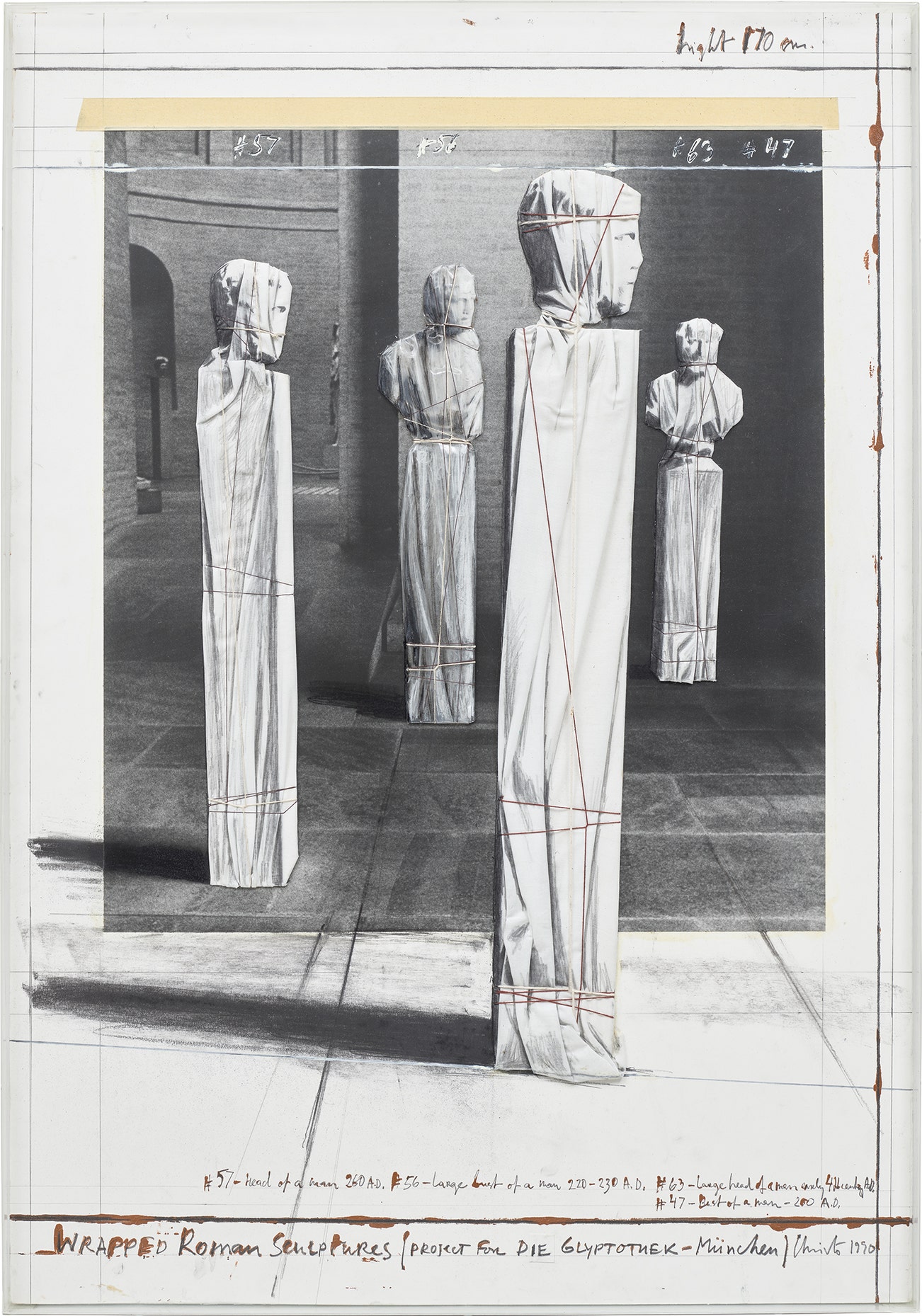 signed, titled and dated 'Wrapped Roman Sculptures, Project for Die Glyptothek - München Christo 1990' lower part; inscribed and dated 'CHRISTO 1990' on the reverse