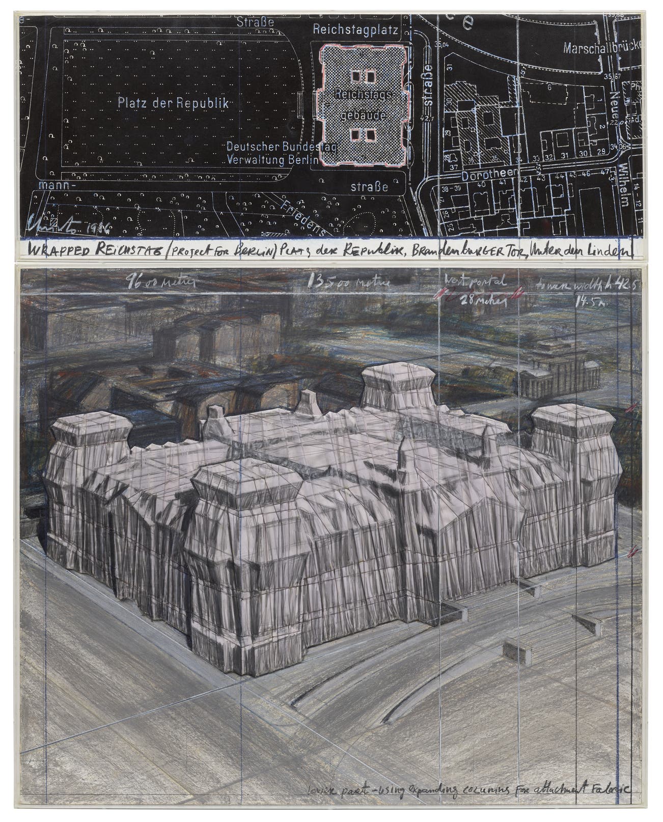 signed and dated 'Christo 1986' lower left of the upper part