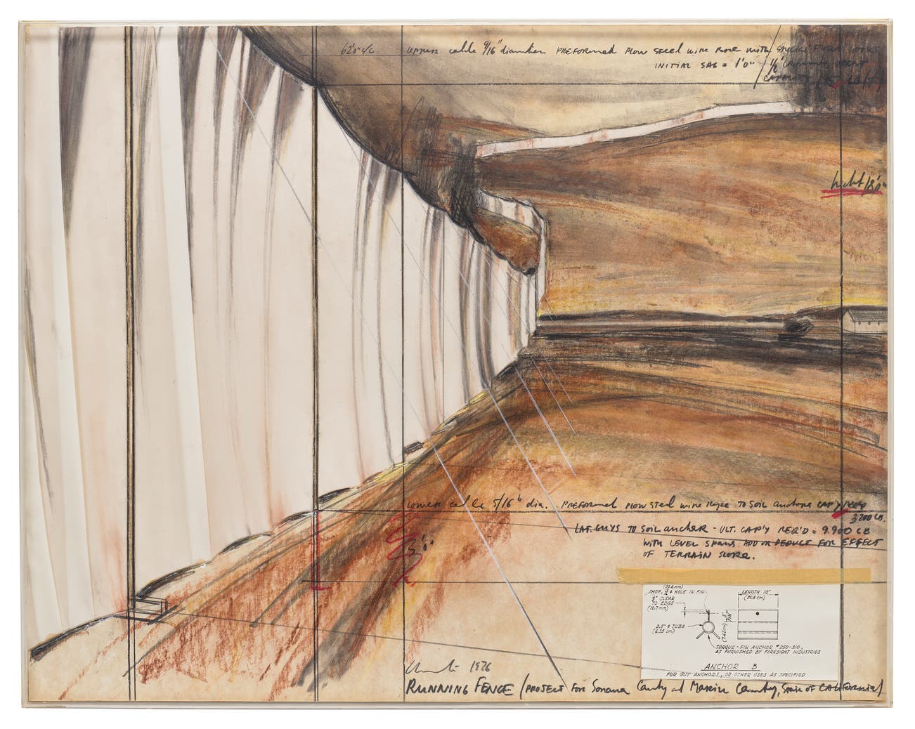 signed and dated 'Christo 1976' lower centre; signed, dedicated and dated 'CHRISTO 1976 For Ted, Christo august 13, 1976' on the reverse