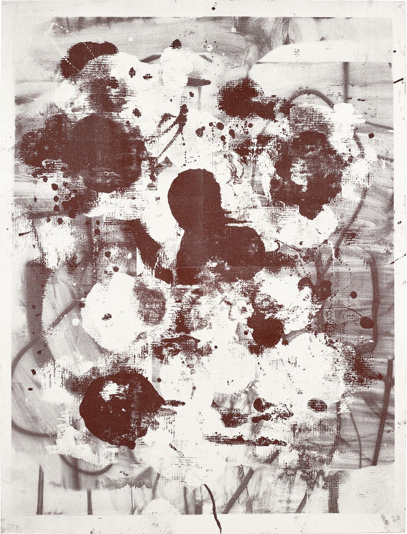 Layering amorphous white shapes against hazy, earthy washes, the present work coagulates into a nebulous bouquet that pulsates through the dynamism of its constituent forms. Presenting dense formations that become obscured with abrupt laminations, Wool introduced a new, freehand gesture that both embraces and represses the expressive potential of painting. Irreverently appropriating the aesthetic of generic, flower-themed wallpapers coating the walls of New York apartments in the 1980s, Wool balked against the too-figurative or too-expressive impulses trending among contemporary painters, instead placing the medium in dialogue with the history of the readymade. As remarked by Glenn O’Brien, ‘Wool engages action painting as his primary source and he then manipulates it, with the cool reflection of a Pop artist or Dada collagist, creating art that is both intense and reflective, physical and mechanical, unconscious and considered, refined in technique and redolent of street vernacular, both high and low’ (Glenn O'Brien, ‘Apocalypse and Wallpaper’, Christopher Wool, Cologne, 2012, p. 8).