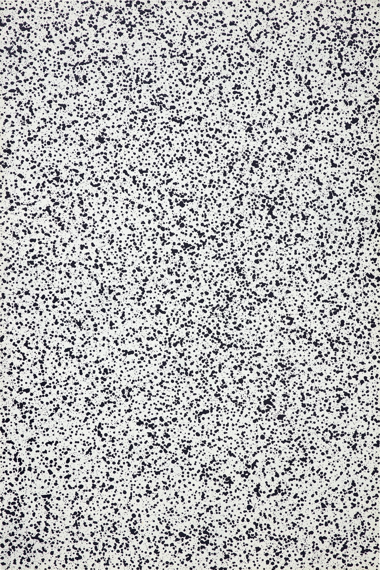 Executed at the dawn of Christopher Wool’s artistic career, when the painter began blending the physical act of creation with automated processes, Untitled, 1986, presents the viewer with an exquisite net of dark dots mesmerically deployed across a vast aluminium surface. Wool’s tableaux from this period typically straddle majestic grandeur and an urban aesthetic, coalescing the arresting countenance of standard large-scale paintings with the daring visual syntax of punk and new wave iconography. They are held in seamless tension between the handmade and the readymade, attending to the gestural subjectivity of painting, whilst exuding the sleekness of mechanic iterations. Untitled eludes not this prodigious balance. Challenging his preferred medium’s demise, which had been declared by the art critic Douglas Crimp in his influential article ‘The Death of Painting’ in 1981, Wool herein conjures its most celebrated characters from previous decades, invoking namely the repetitious aesthetic of Jackson Pollock’s all-over canvases, the frenetic dotting of Yayoi Kusama’s early Infinity Nets, and the glossy surfaces of Pop Art protagonists.
