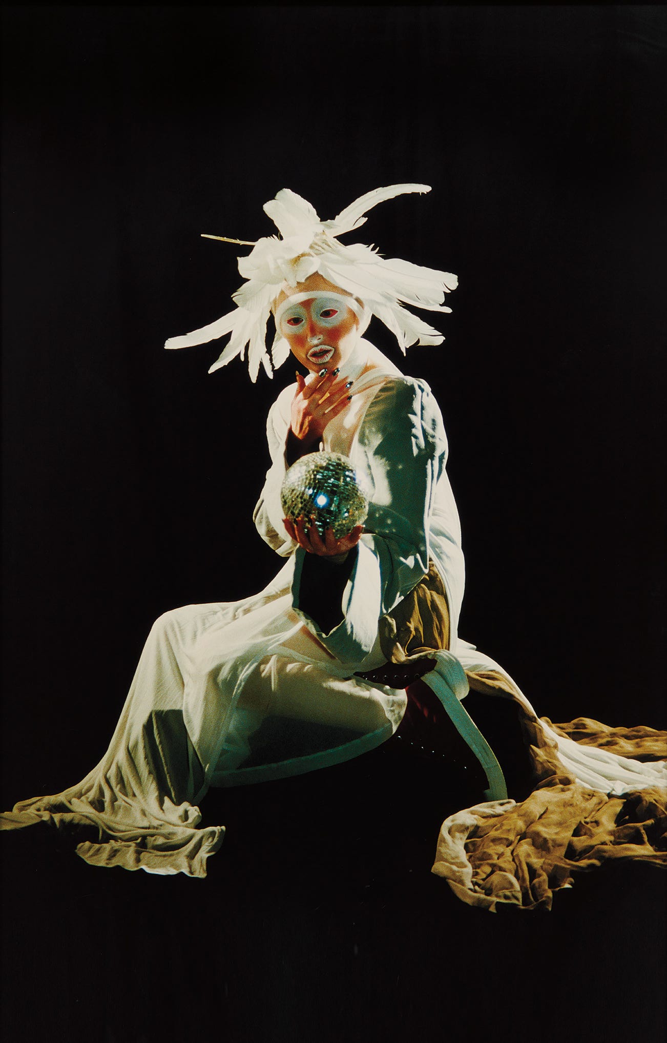 Like Harper’s, Kawakubo gave Sherman full creative freedom, sending her the upcoming Fall 1994/ Winter 1995 collections to be photographed for various marketing materials. The resulting photographs, of which Untitled #296 is the definitive example, are a fanciful continuation of her 1993 fashion work, and are as conceptually avant garde as Kawakubo’s designs, which create and conceal a woman’s identity in the same manner that Sherman’s artwork creates new personas while concealing her own. Just as all of Sherman’s series appropriate aspects of mainstream culture – from film and television, to magazines and art history – this collaboration draws from fairy tales and science fiction with the elaborate designs taking center stage.