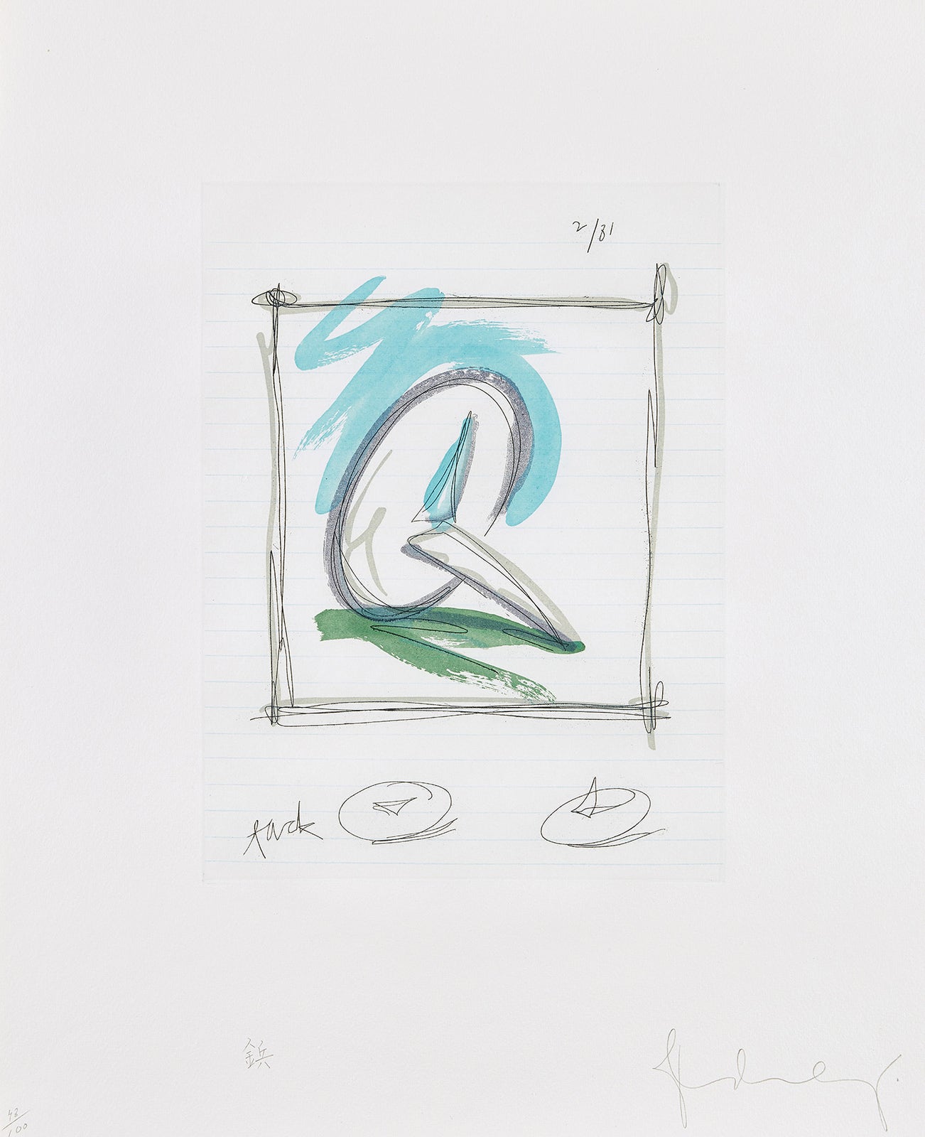 Signed and numbered 48/100 in pencil (there were also 30 artist's proofs), published by Marginalia Publishing Group, Modern Prints Workshop, Gendai Hanga Kobo Co., Ltd., Tokyo, framed.