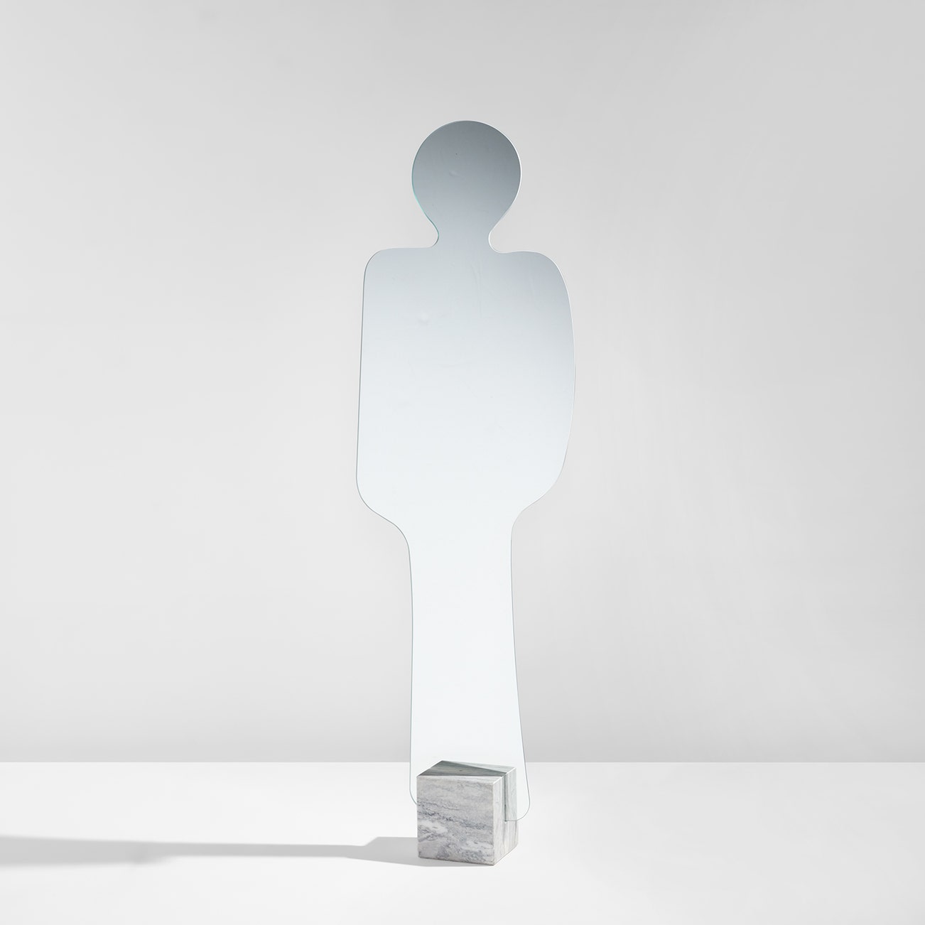 The cover of the December 23, 1974 issue of TIME magazine in Europe featured a photograph of avant-garde fashion designer Pierre Cardin wearing nothing but a bath towel and socks, surrounded by Cardin’s own “Pierca” chair and the present model “Narciso” mirror. This promotional photograph has caused confusion regarding the attribution of the present lot, which was manufactured by the northern Italian-based firm Acerbis and, in fact, designed by Claudio Platania. In the early 1970s, Cardin partnered with Acerbis—a 153-year-old company that, during this period, collaborated with designers such as Massimo and Lella Vignelli, Vico Magistretti, and Nanda Vigo, among others—on a line of furnishing which were advertised as “Linea Pierre Cardin.” The eponymous line, however, included works that were conceptualized by other designers including Platania and Alfredo Pizzo Greco. The mirror’s title is a playful allusion to Narcissus, a beautiful youth in Greek mythology who fell in love with his own reflection. From 1970 to 1985, Acerbis manufactured this model and in 1990, the model was re-editioned by Morphos, a division of Acerbis, for two years.