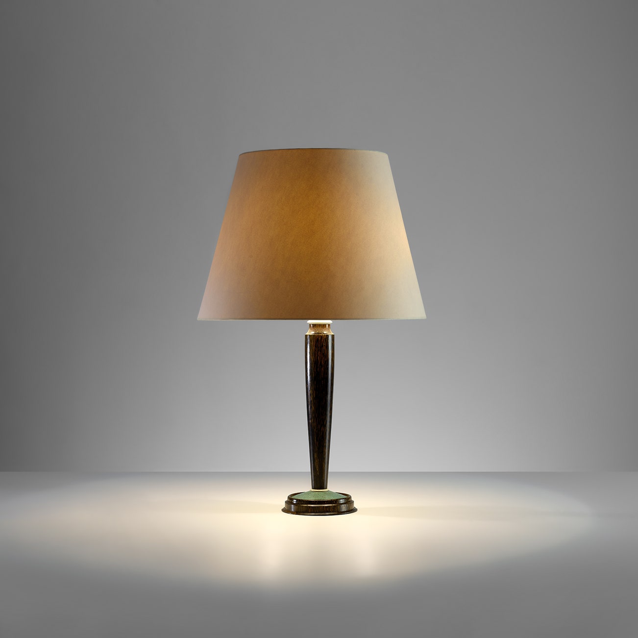 Palmwood, Brazilian rosewood, shagreen, ivorine, brass, paper shade.
