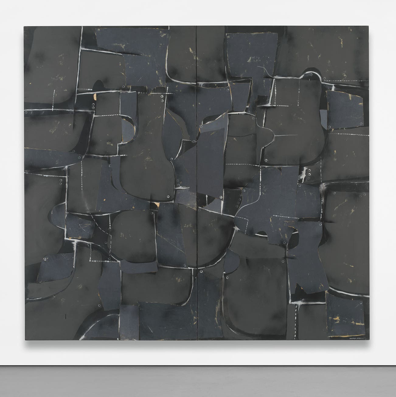 signed "MARCA-RELLI" lower right of the right canvas; signed, titled and dated "MARCA-RELLI L-L-1-84 BLACK-BOARD #2" on the reverse of the left canvas; signed, titled and dated "MARCA-RELLI L-L-1-84 BLACK-BOARD 2" on the reverse of the right canvas; inscribed "SECTION 'A'" on the left stretcher; inscribed "SECTION 'B'" on the right stretcher