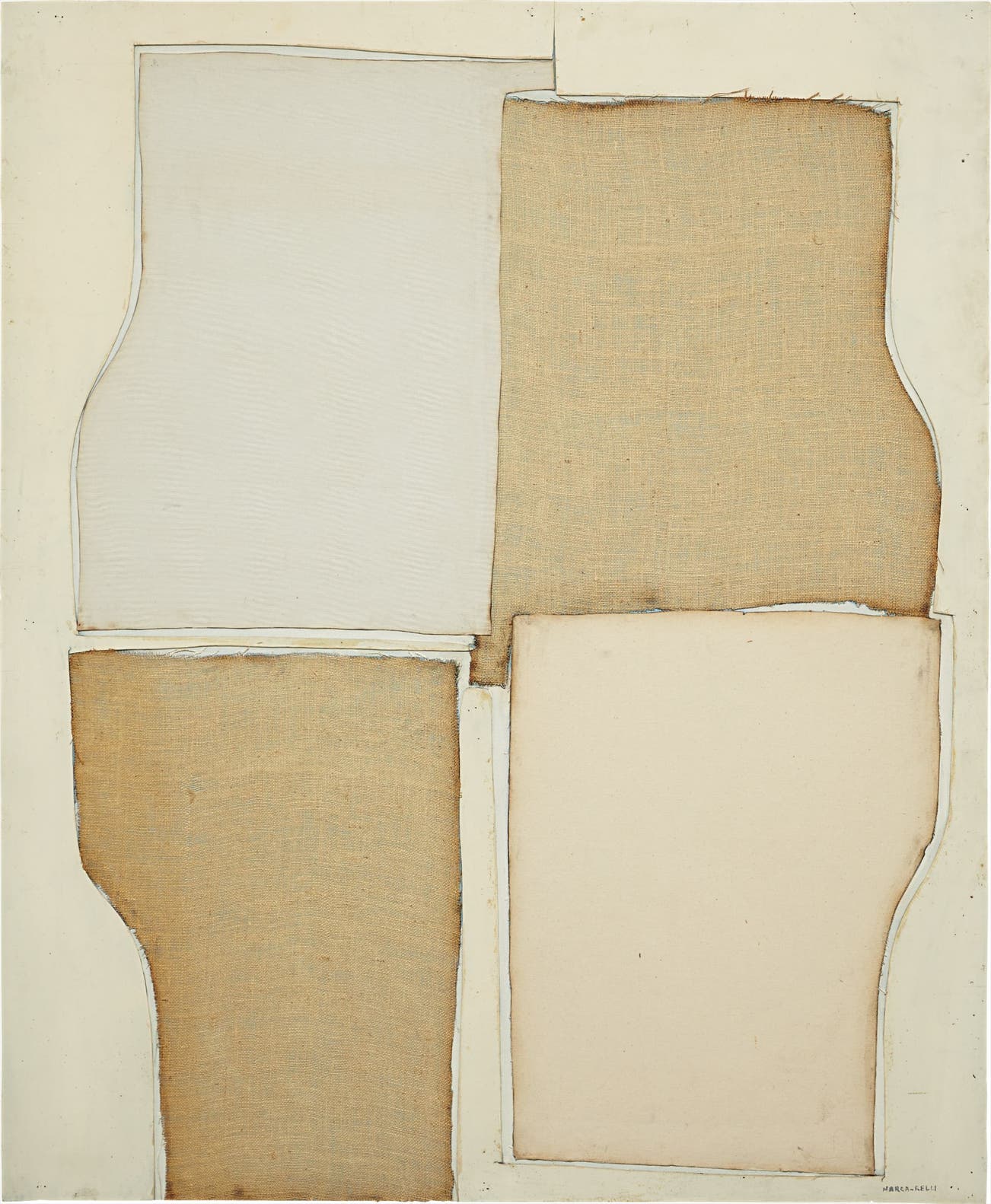 Signed "Marca-Relli" lower right; further signed and titled "Marca-Relli L-5-69" on the reverse.