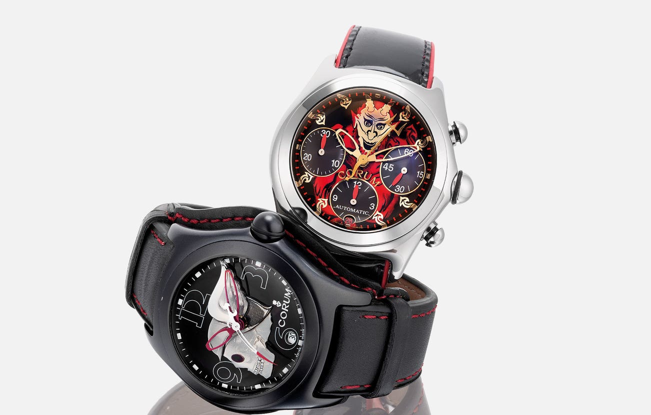 Launched in 2000, the Corum Bubble collection was introduced as a new approach to horology as well as catering to a new generation of watch collectors entering into the new millennium. With various models and collaborations produced as limited series, the Corum “Bubble” had themes to fit various groups of collectors. The present two watches in the lot are both themed limited edition watches with the first a limited edition “Lucifer” produced in 666 examples with the present watch numbered 057/666. The second watch in the lot is themed “Night Flyer” with 999 examples produced and the present watch numbered 397/999.