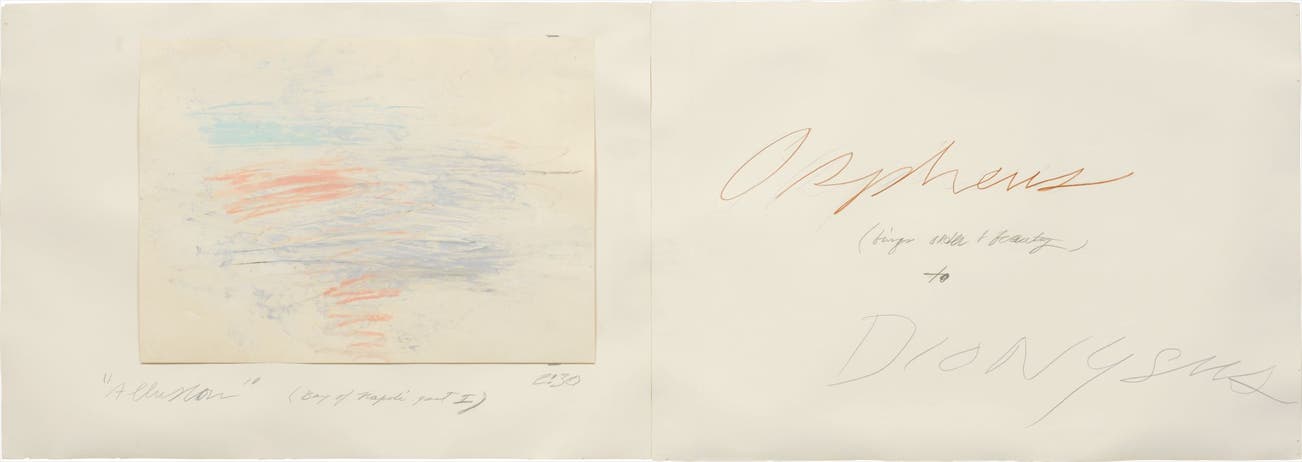 American | B. 1928 D. 2011Cy Twombly emerged in the mid-1950s alongside New York artists Jasper Johns and Robert Rauschenberg. While at first developing a graffiti-like style influenced by Abstract Expressionist automatism–having notably studied under Franz Kline and Robert Motherwell at the legendary Black Mountain College between 1951 and 1952–Twombly was a prominent figure in the new generation of artists that challenged the abstract orthodoxy of the New York School. Twombly developed a highly unique pictorial language that found its purest expression upon his life-defining move to Rome in 1957. Simultaneously invoking classical history, poetry, mythology and his own contemporary lived experience, Twombly's visual idiom is distinguished by a remarkable vocabulary of signs and marks and the fusion of word and text.