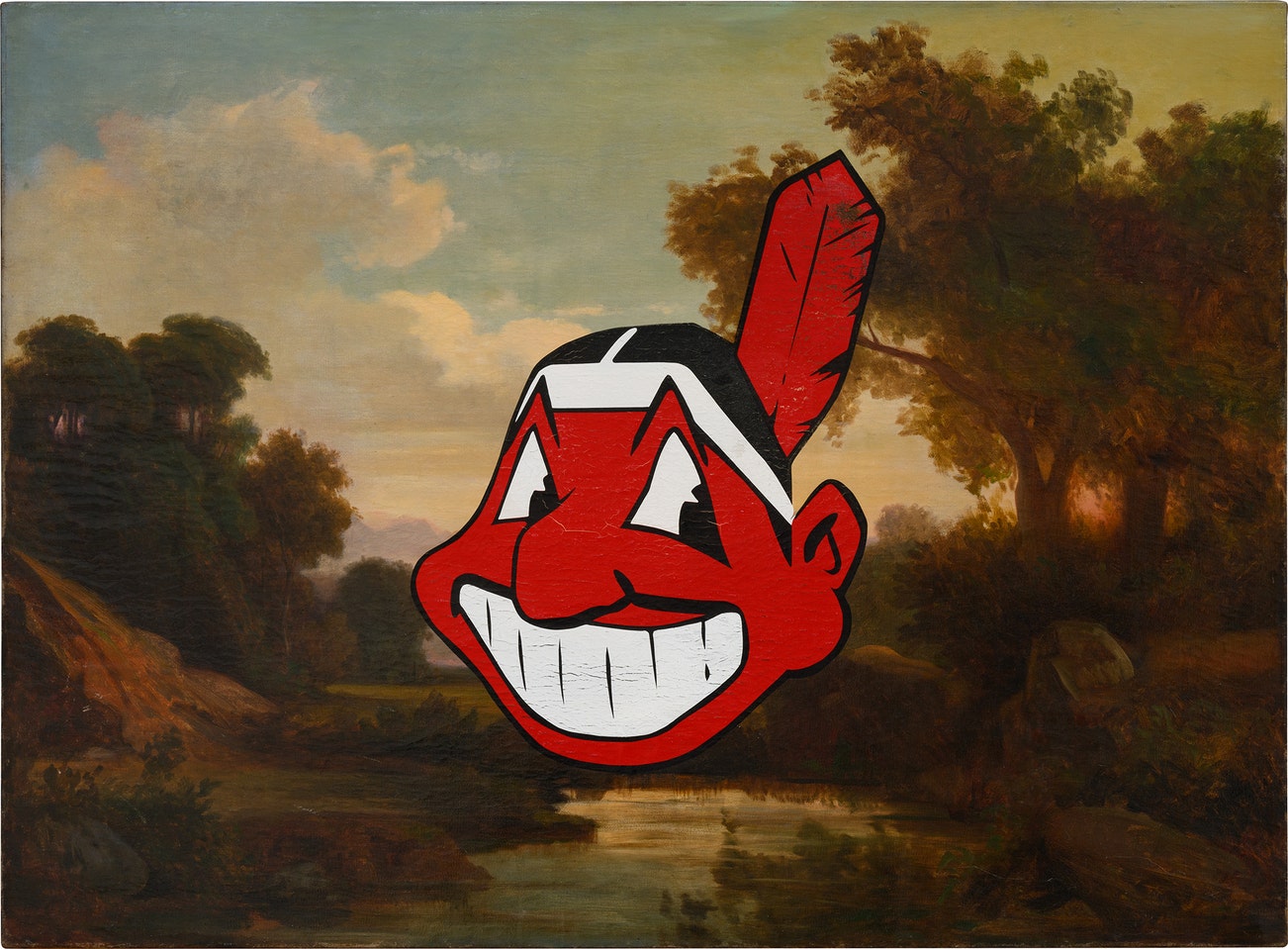 oil and screenprint on found canvas