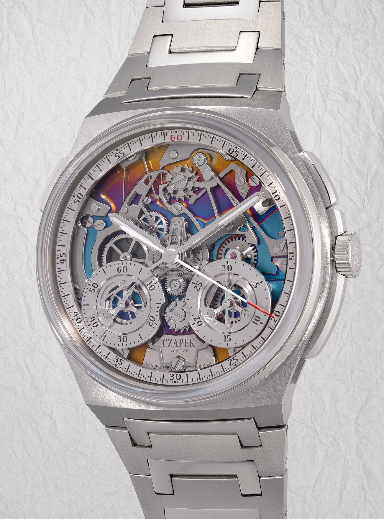 A “like-new” colorful limited edition stainless steel split-seconds chronograph wristwatch with bracelet, certificate and presentation box, one of a limited edition of 8 pieces made for the 350th anniversary of Mitsukoshi department store
