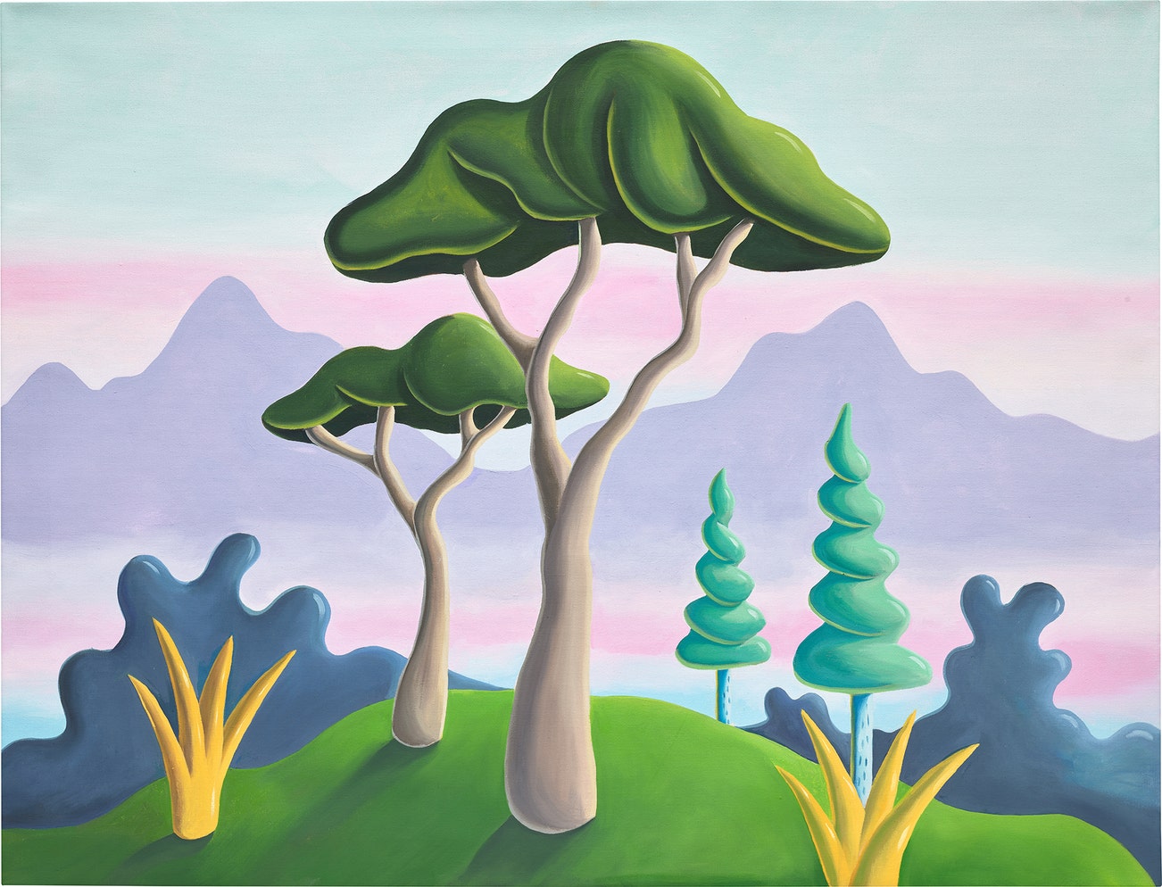 Four Trees with Pink Sky and Yellow Grass